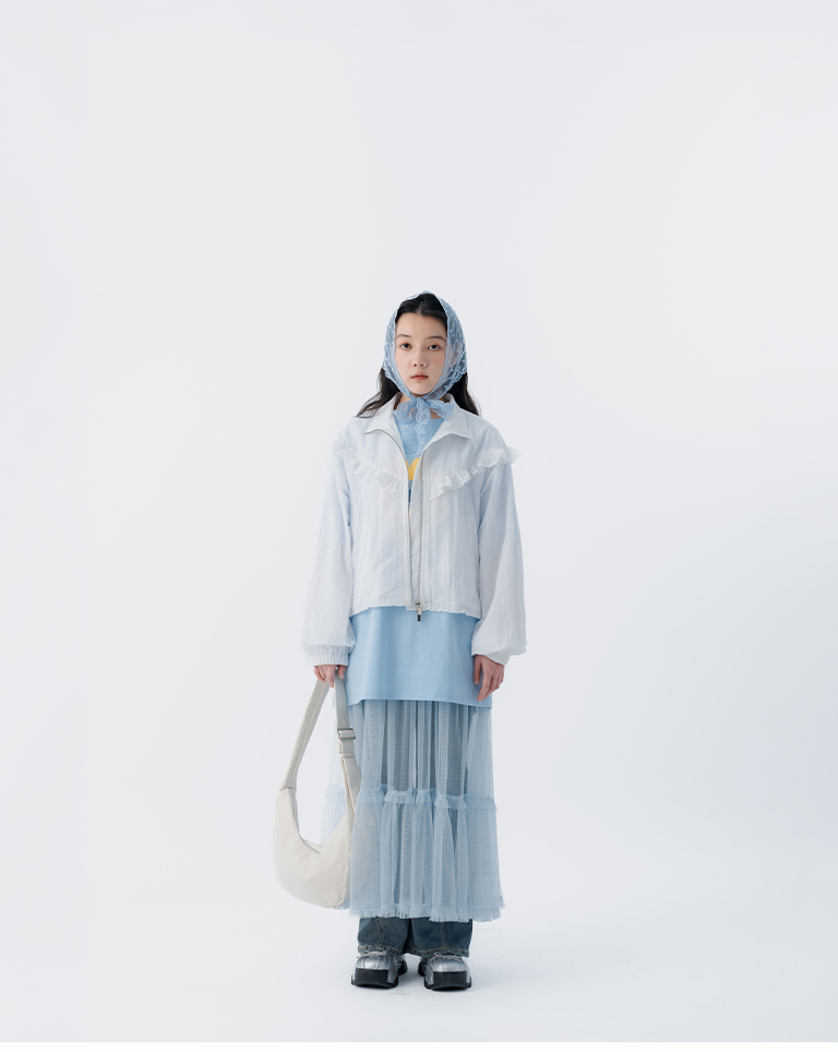 S~L身形實測!分尺寸皺皺木耳邊透膚高領長袖上衣