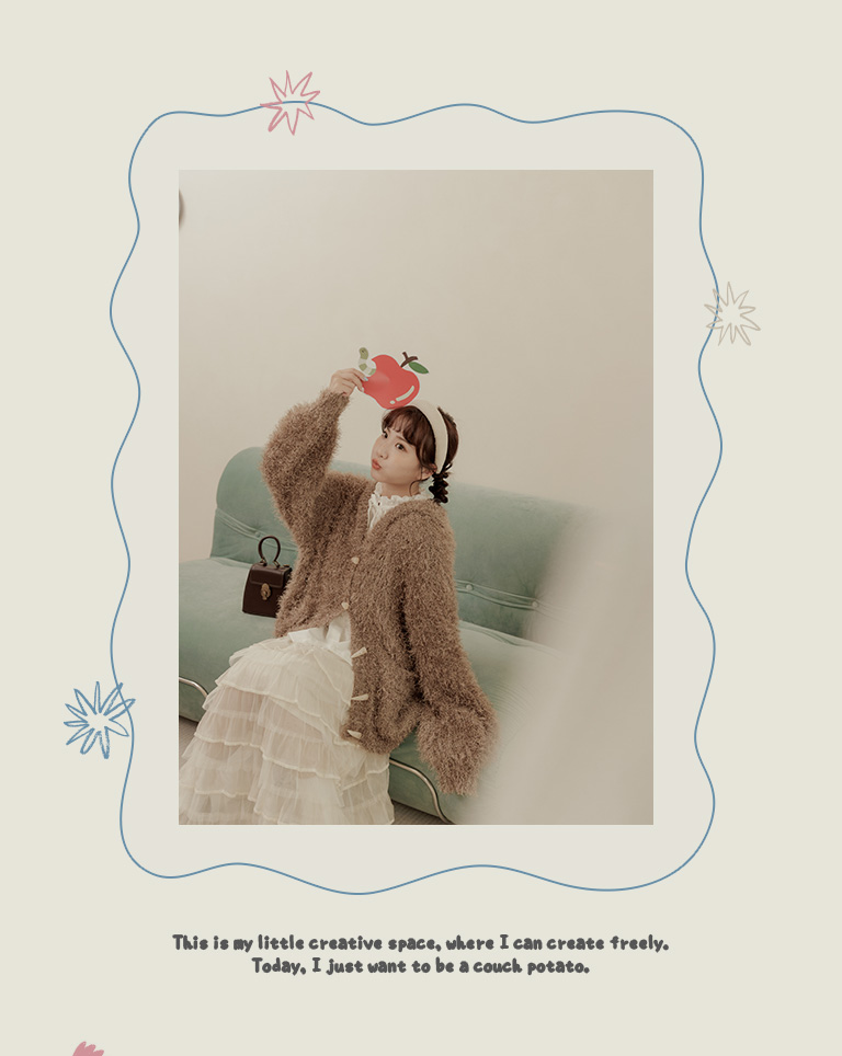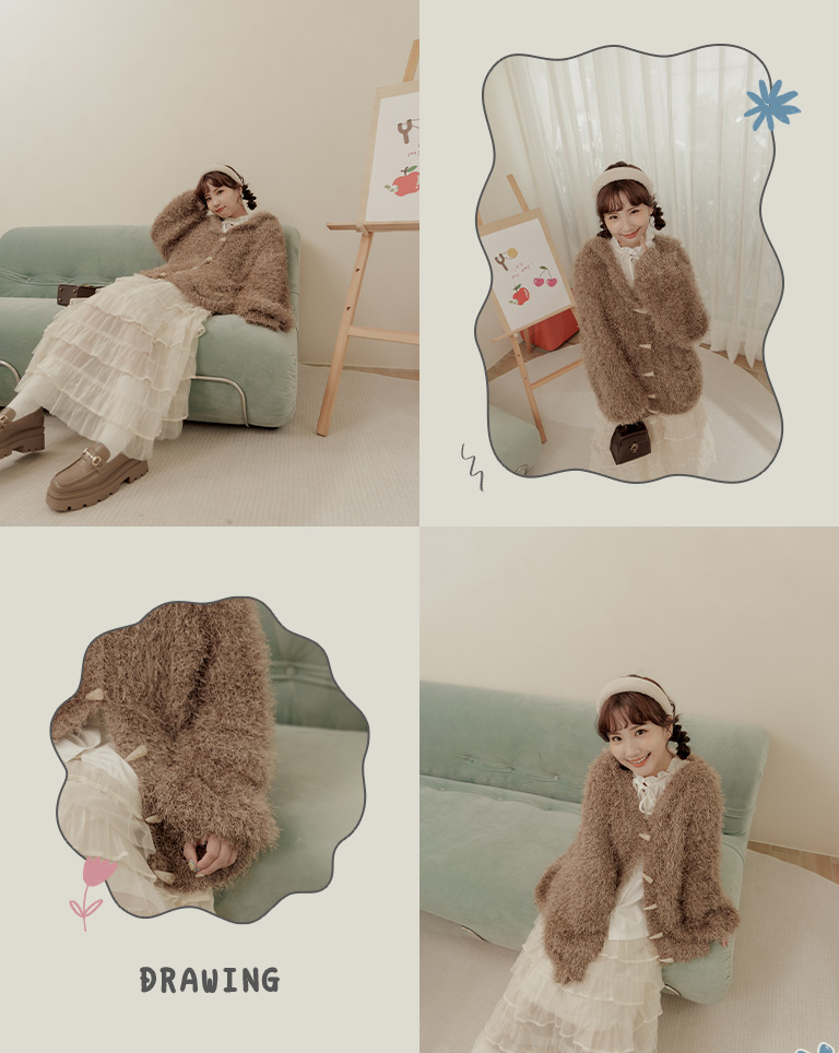 姿佑聯名 針織毛茸茸牛角扣連帽外套