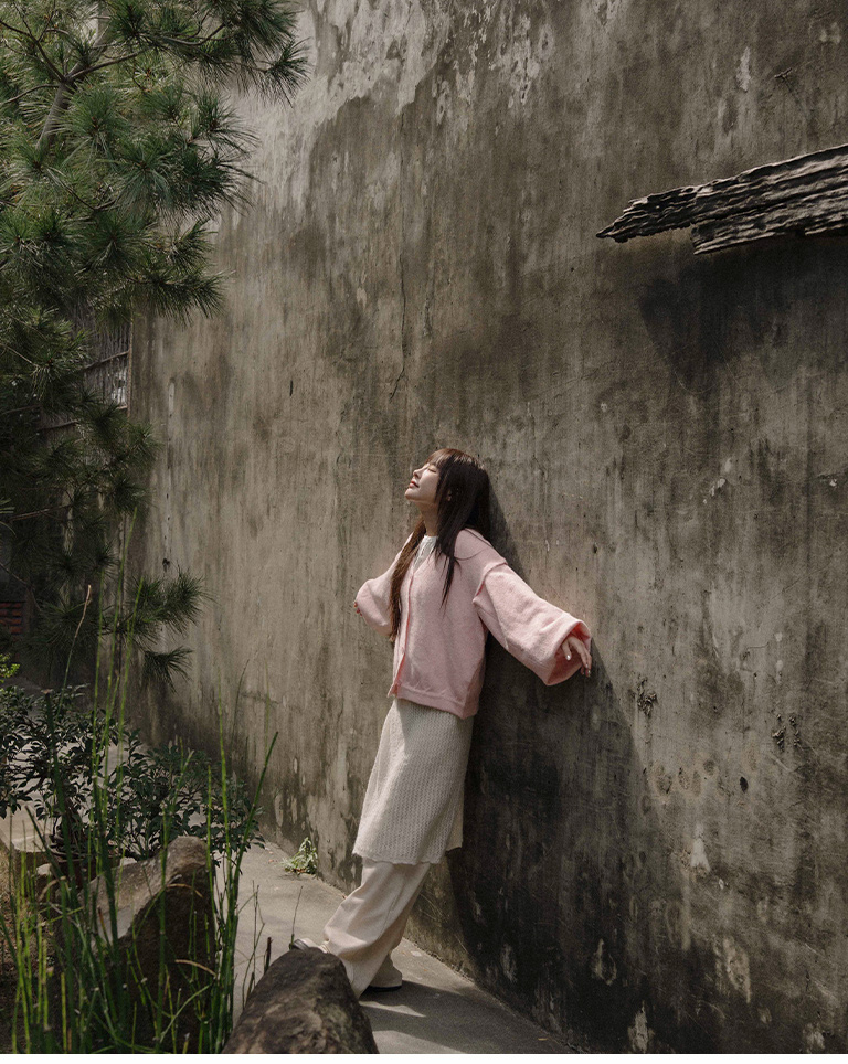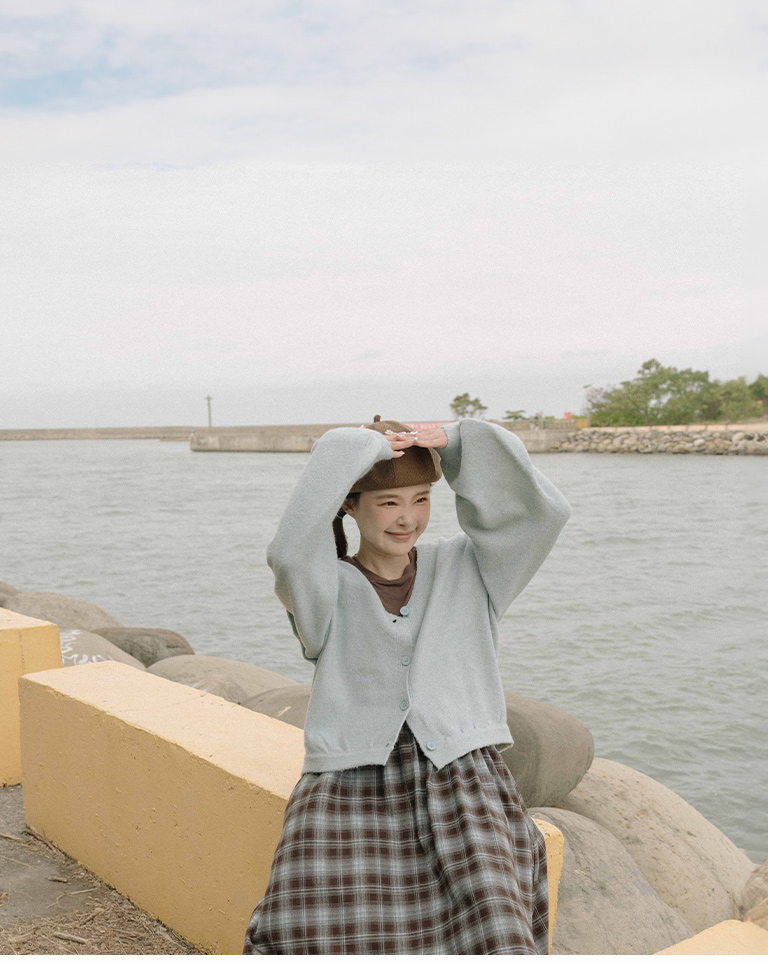 S~L身形實測!分尺寸皺皺木耳邊透膚高領長袖上衣