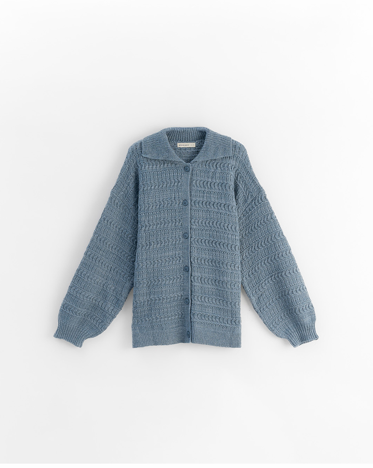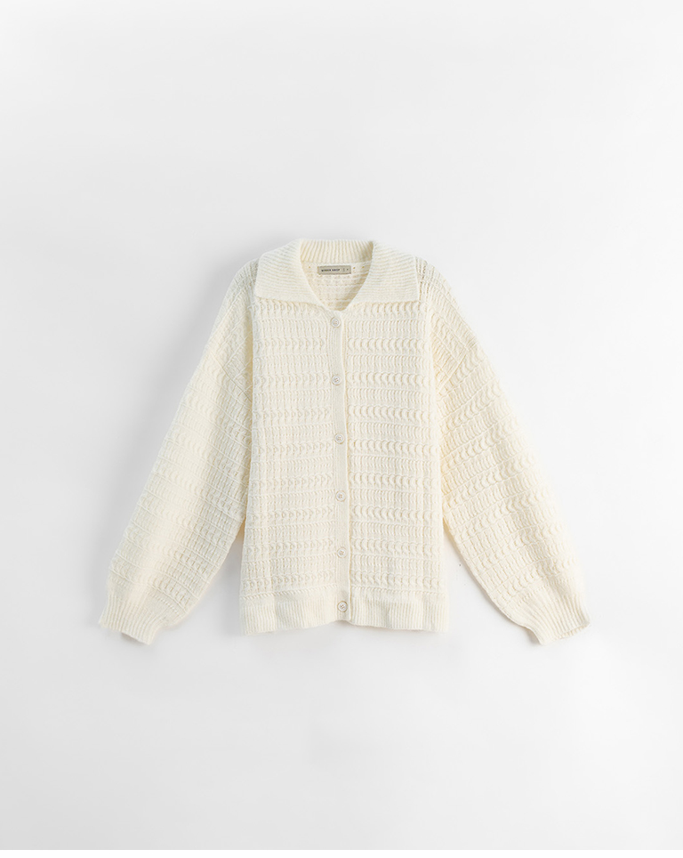 鏤空緹花翻領排釦針織毛衣