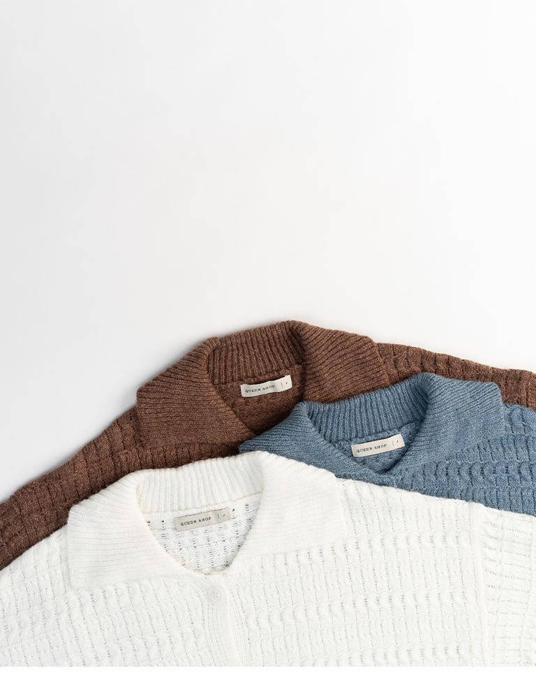 鏤空緹花翻領排釦針織毛衣 三色售