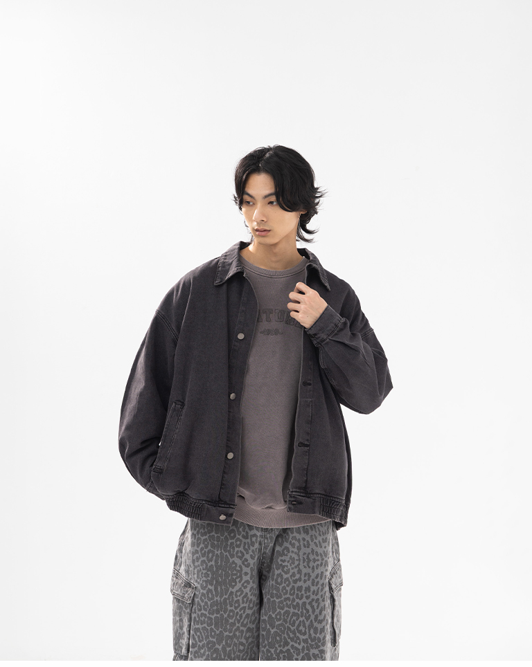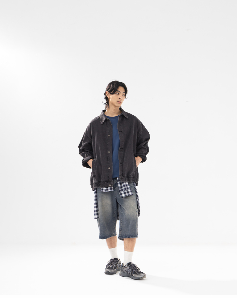 男裝 洗水刷色設計寬版牛仔外套