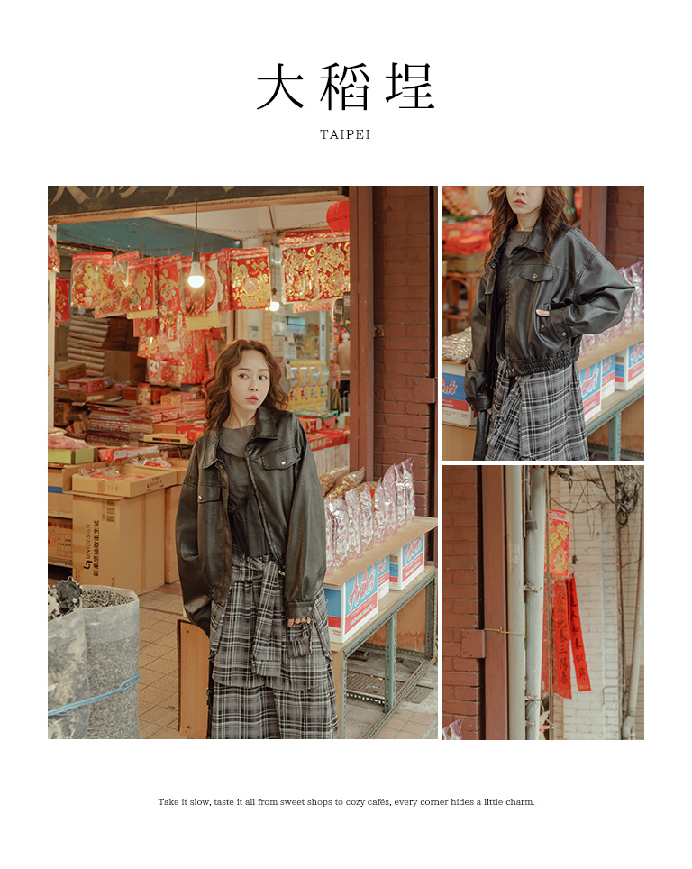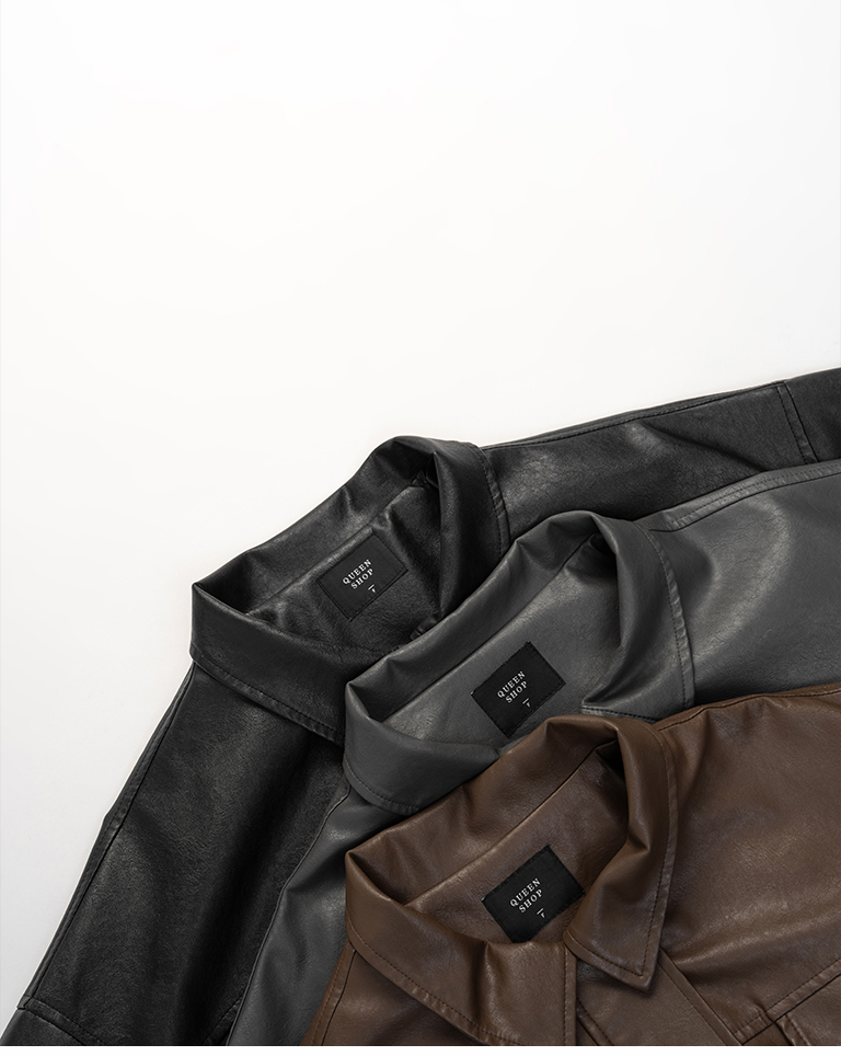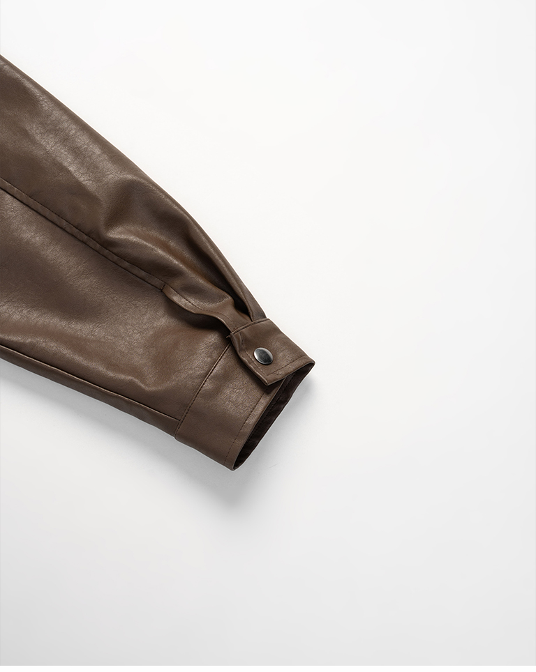 翻蓋口袋造型短版皮革夾克外套