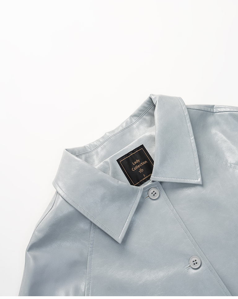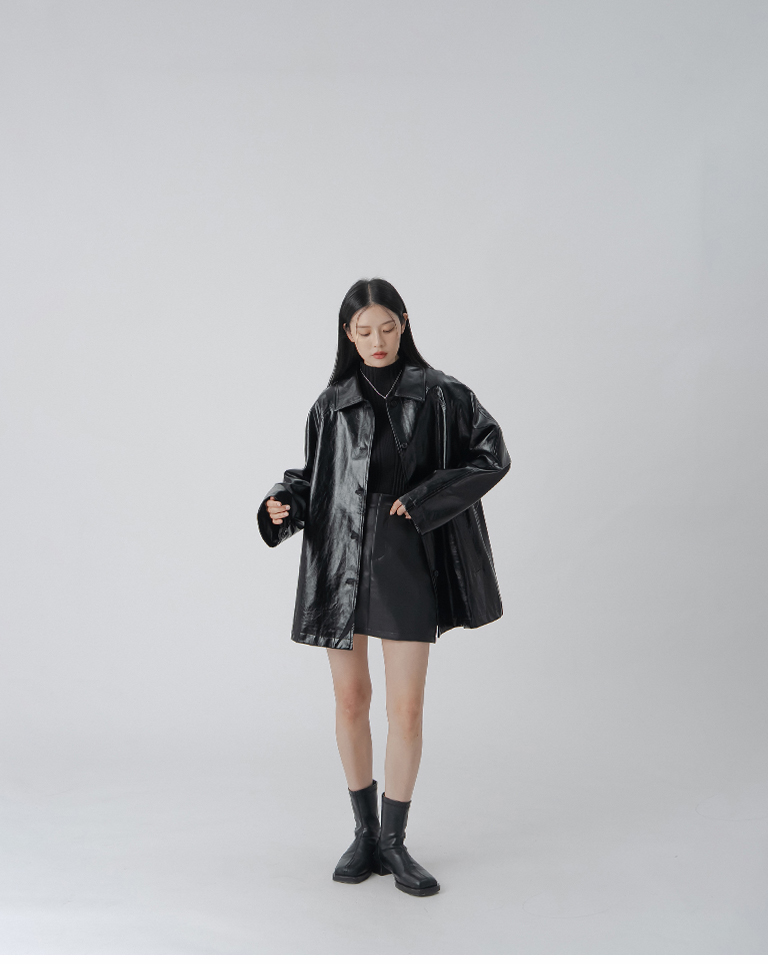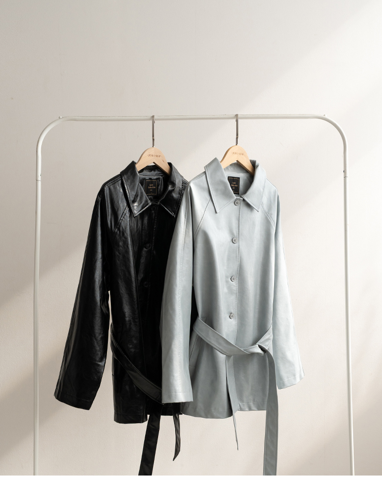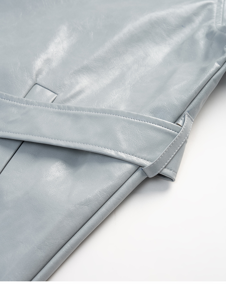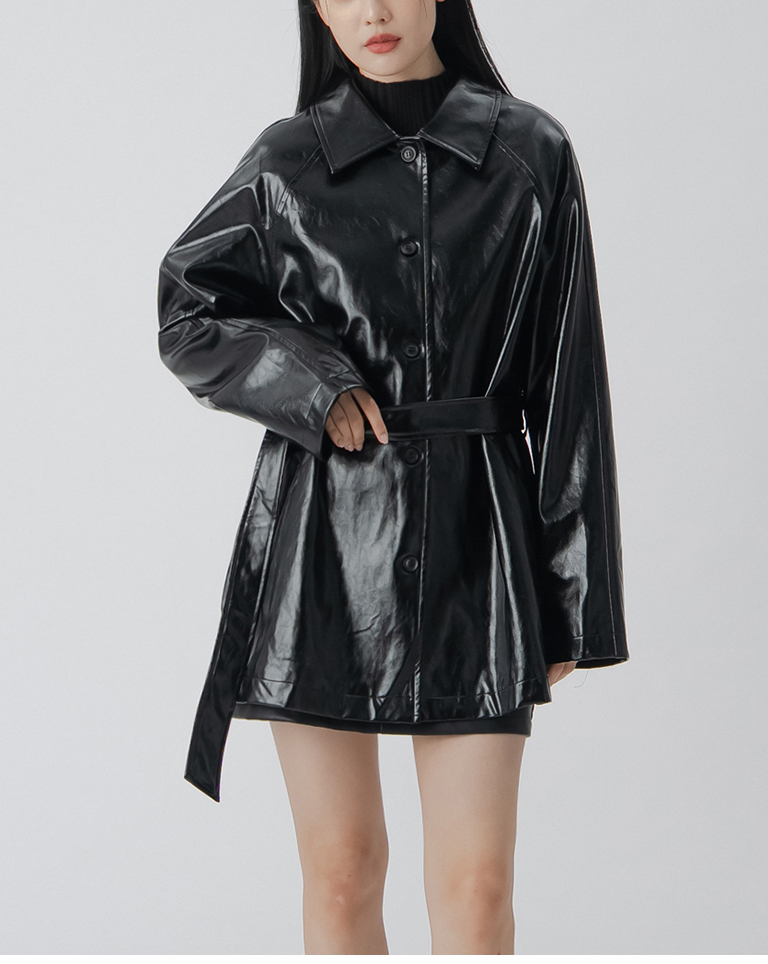 質感光澤皮革大衣外套附綁帶