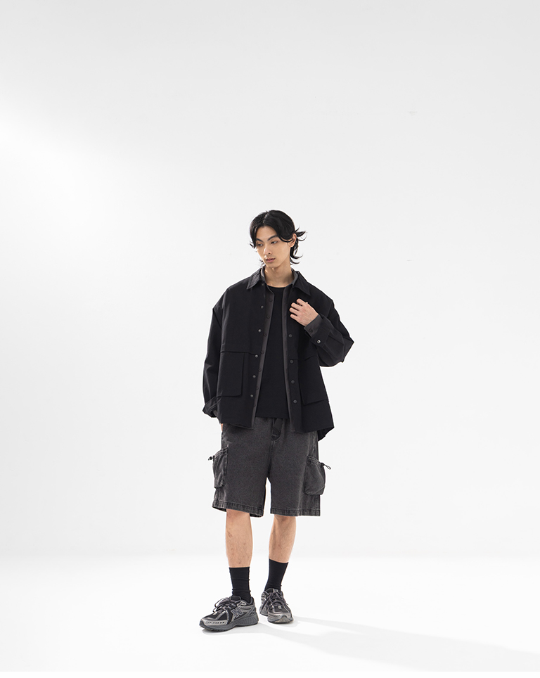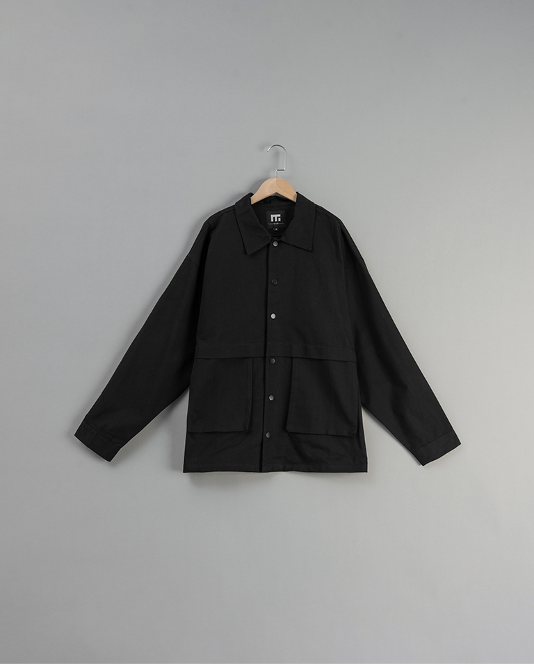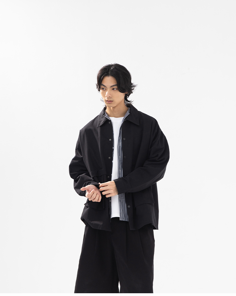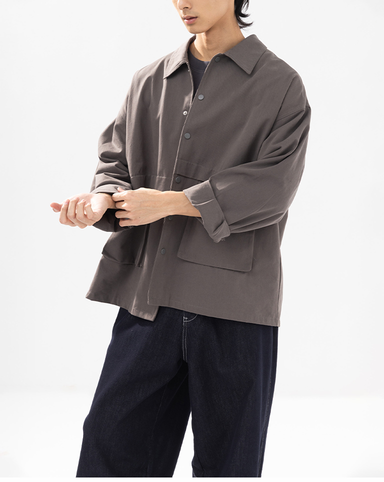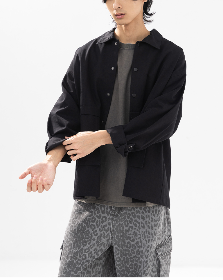 男裝 素面前大口袋寬版襯衫外套 兩色售 M/L