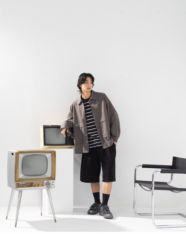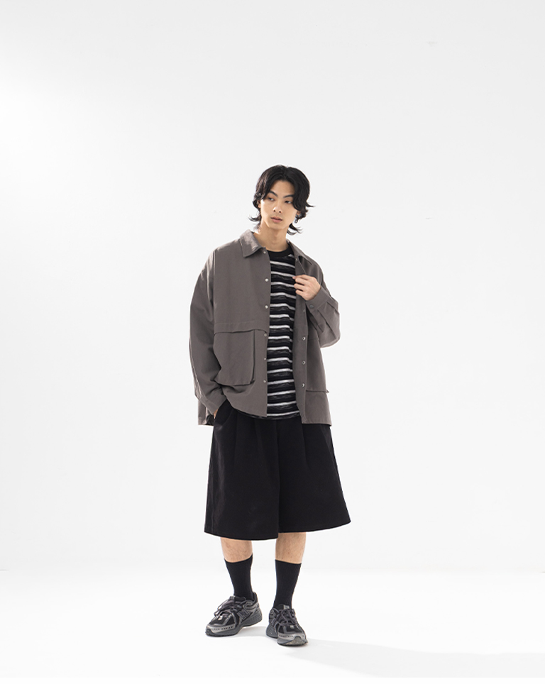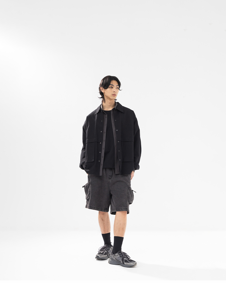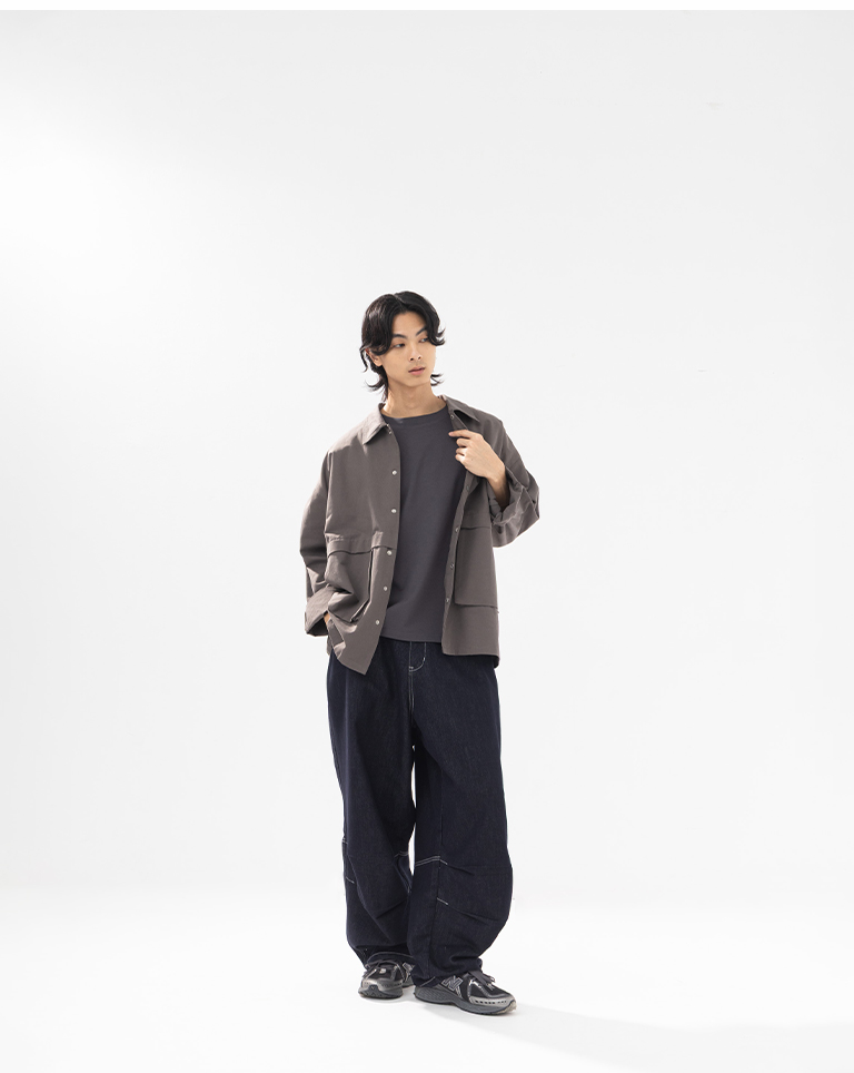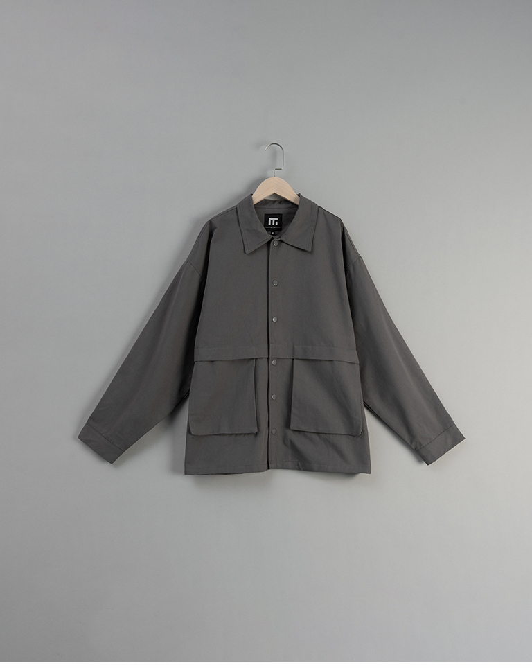 男裝 素面前大口袋寬版襯衫外套 兩色售 M/L