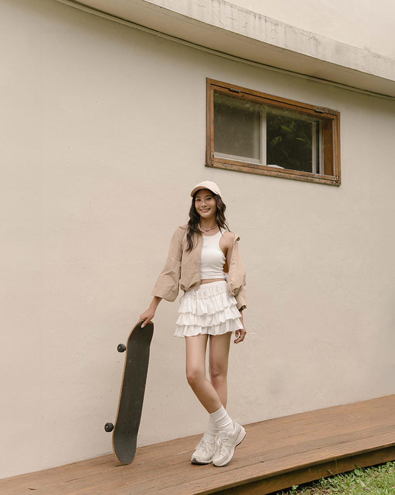 下身搭配短裙 展現中性街頭風