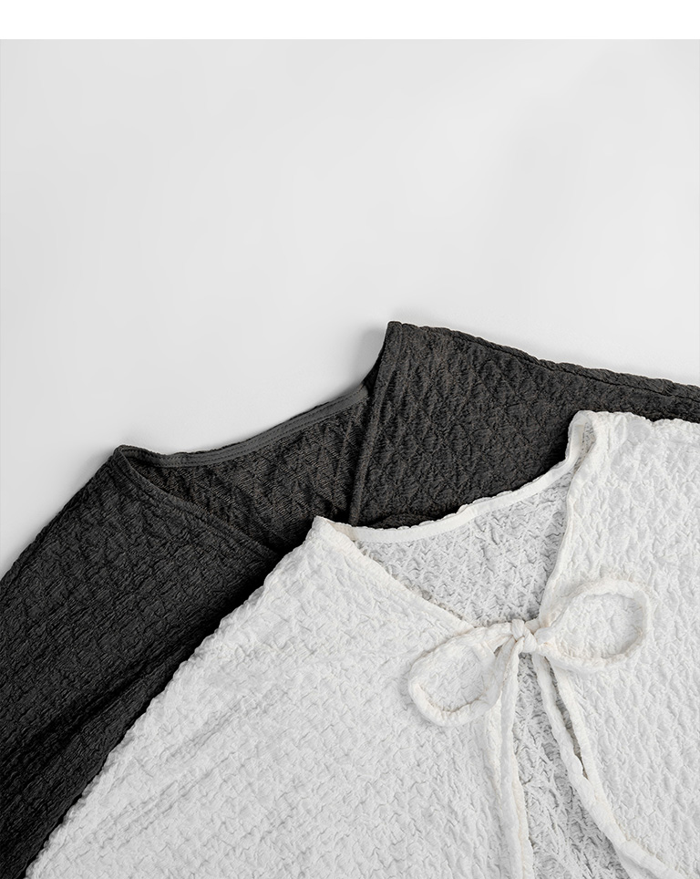 立體皺皺肌理長袖綁帶罩衫 兩色售
