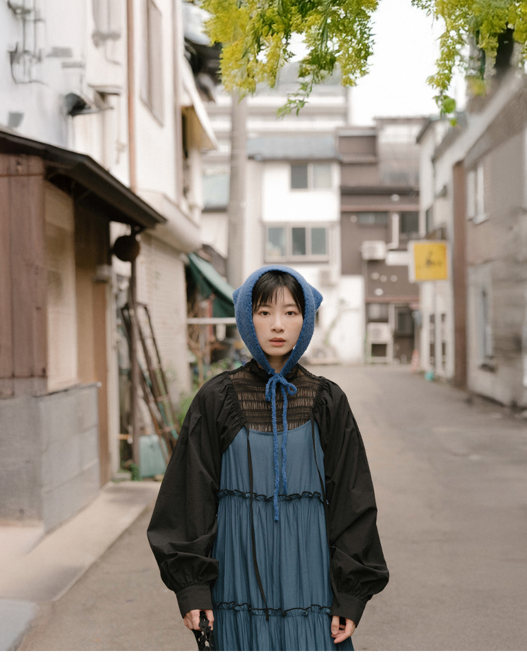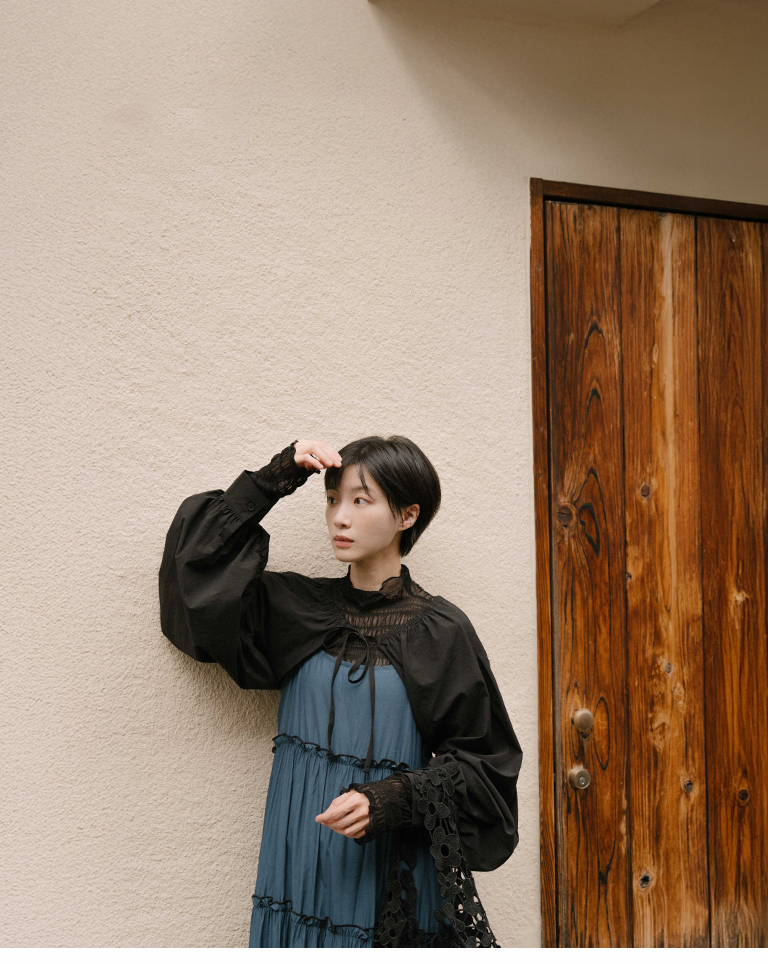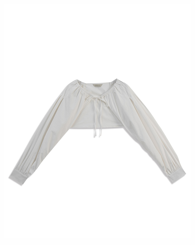 綁帶澎袖造型短版罩衫外套