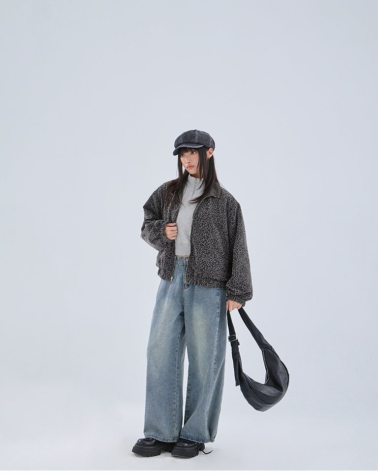 豹紋磨毛兩穿夾克外套