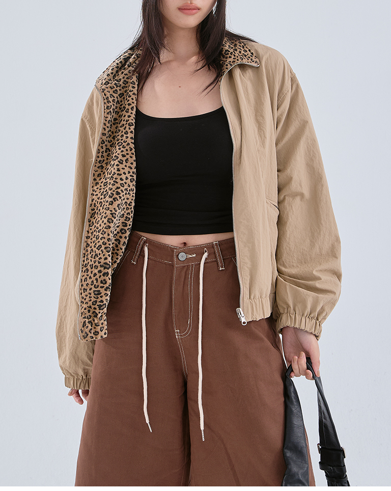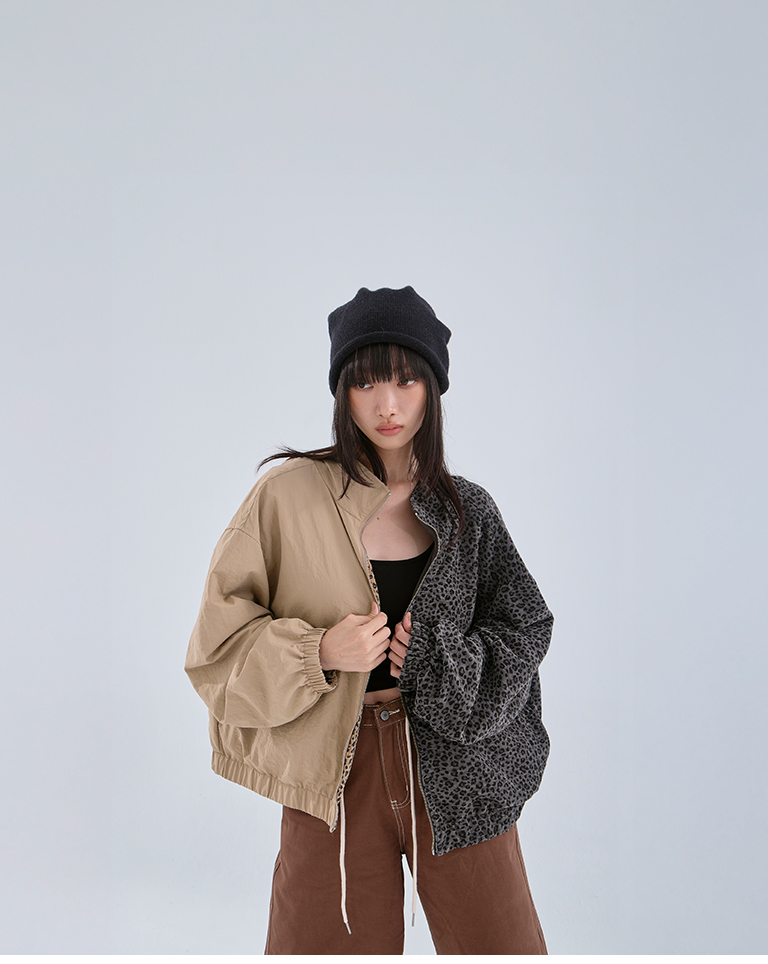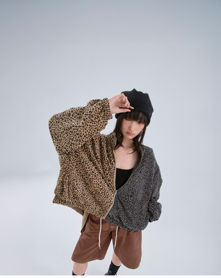 豹紋磨毛兩穿夾克外套 兩色售