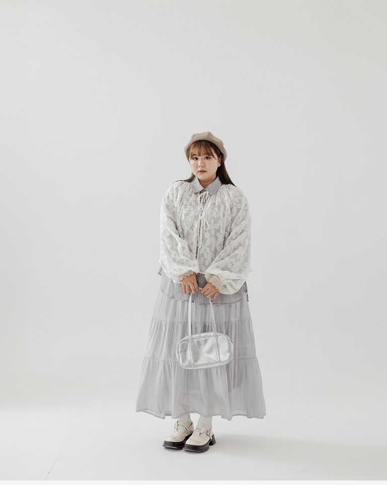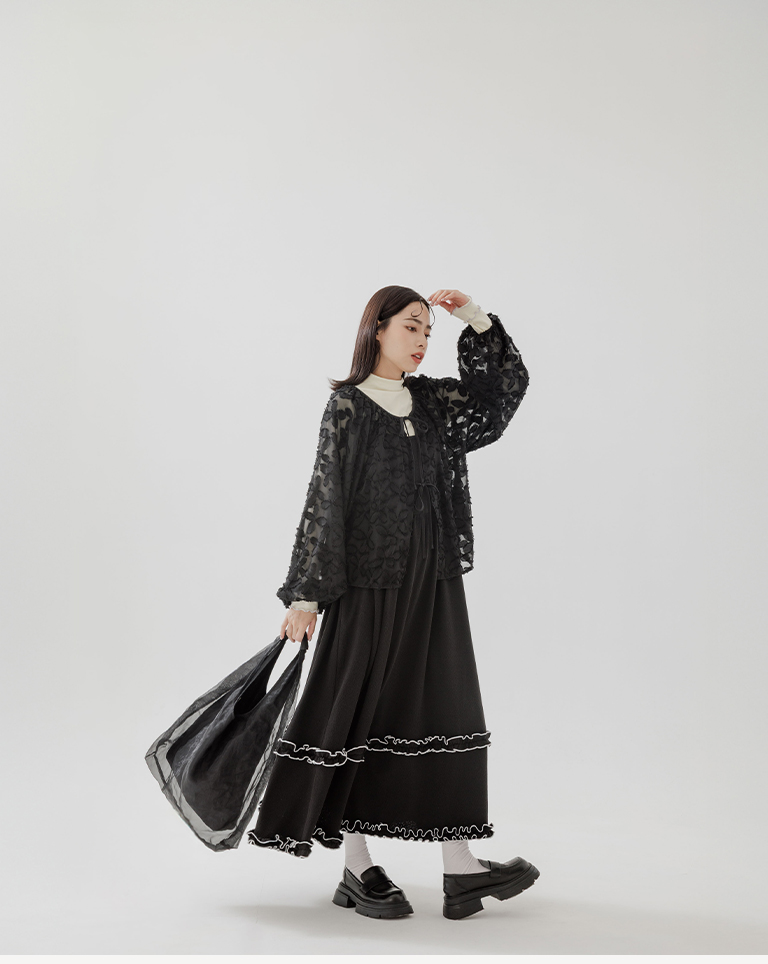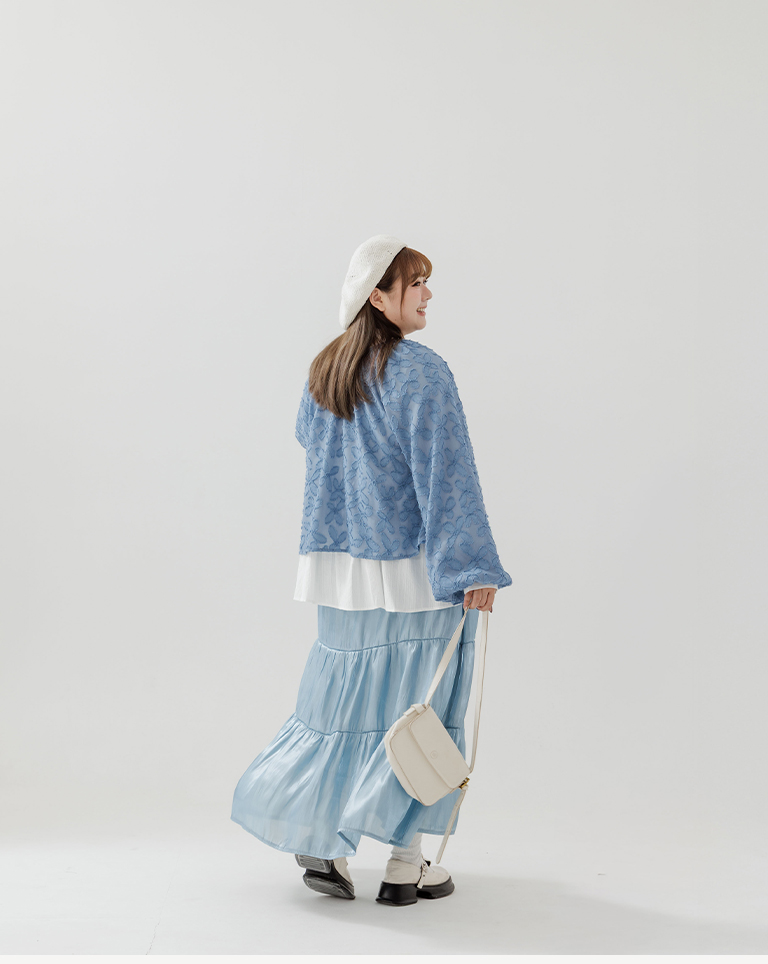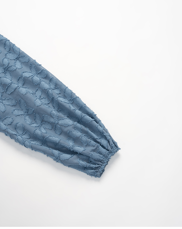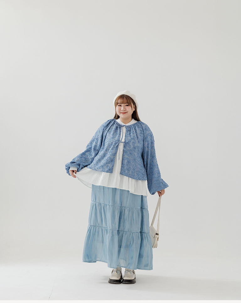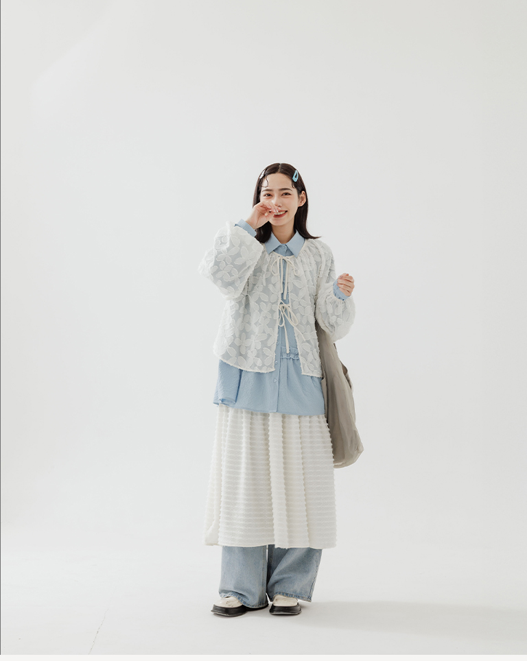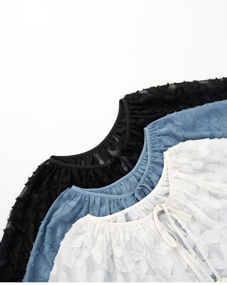 棉花糖 緹花澎袖綁帶長袖罩衫