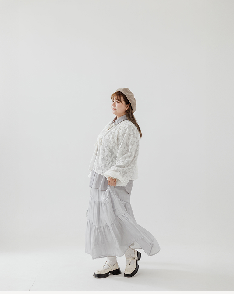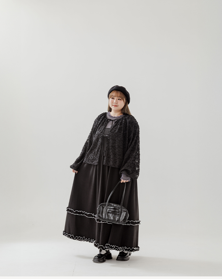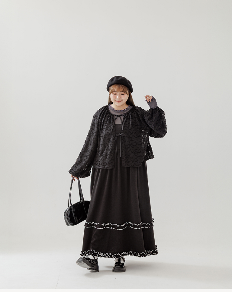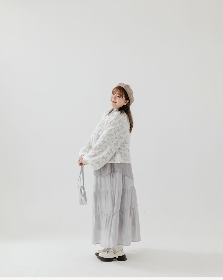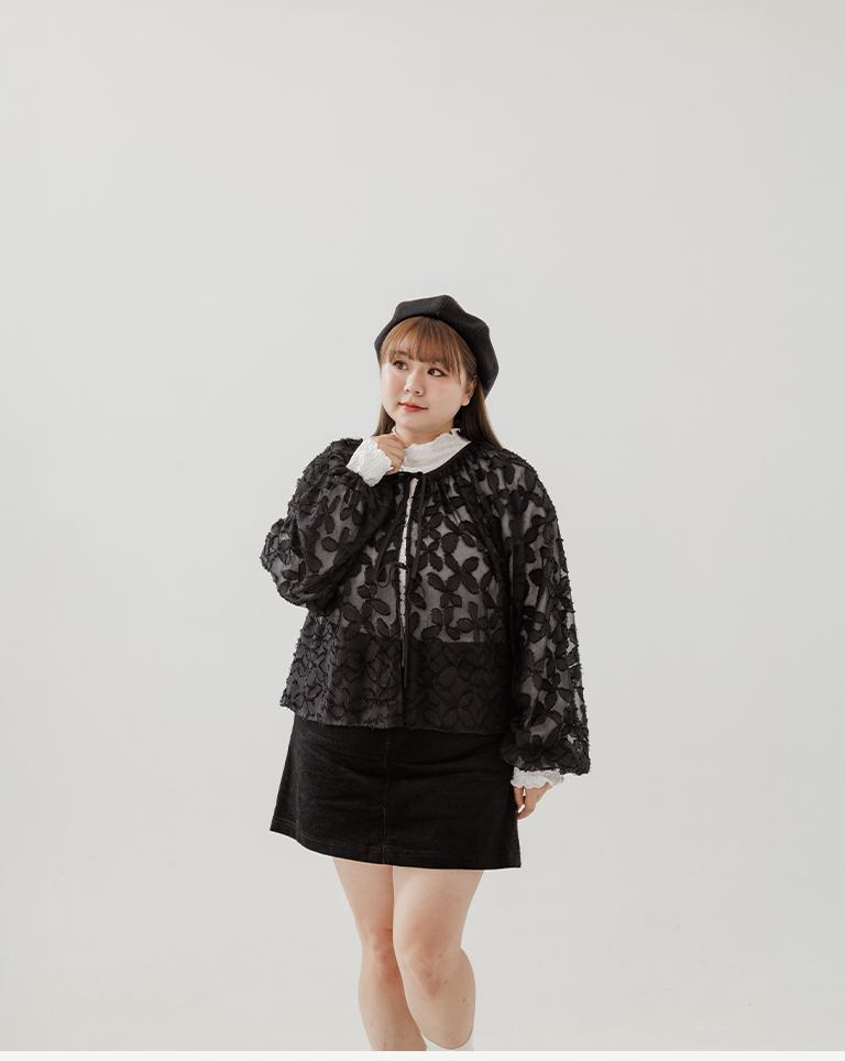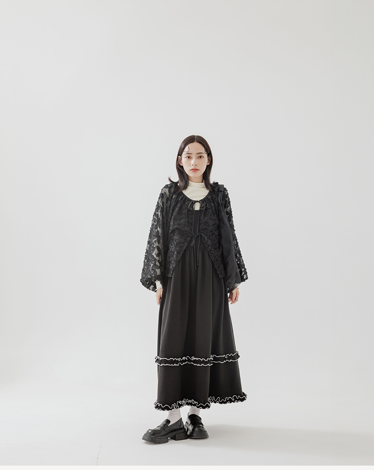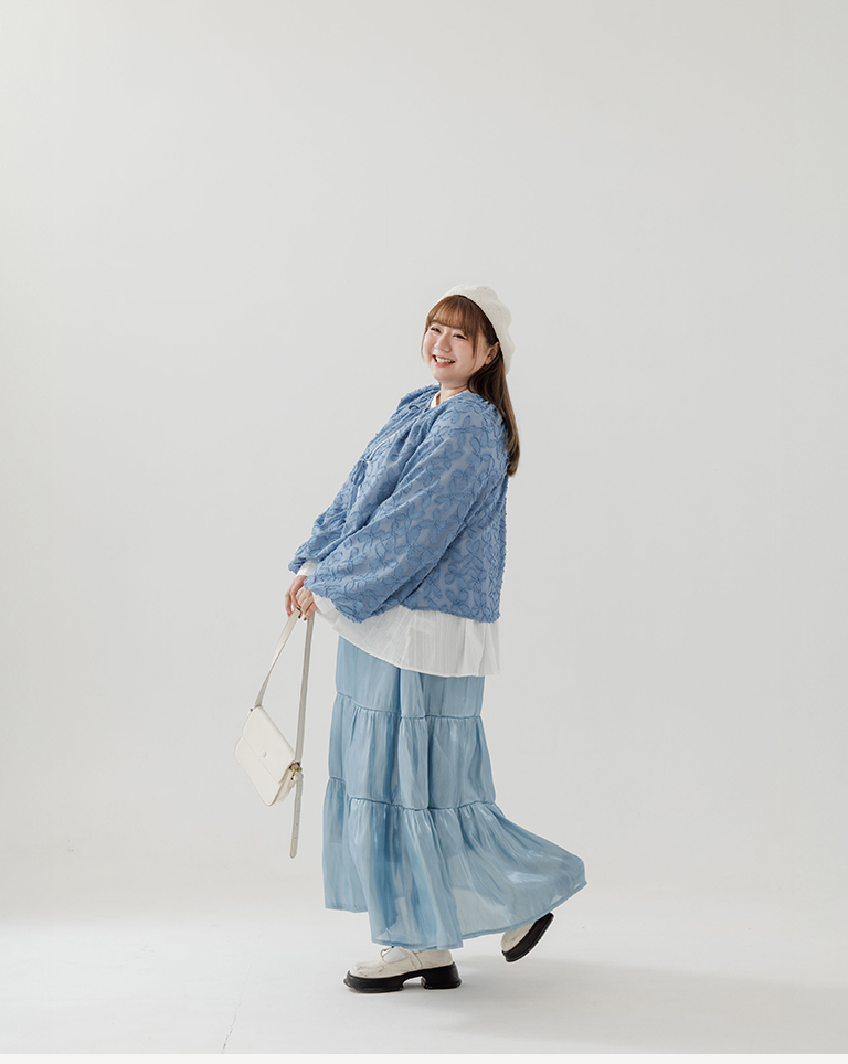 棉花糖 緹花澎袖綁帶長袖罩衫