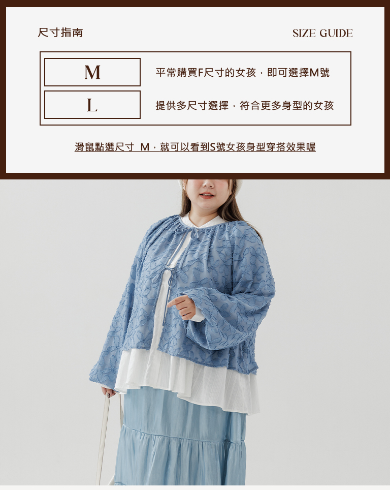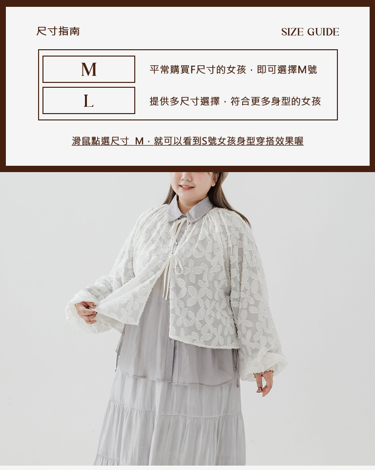 棉花糖 緹花澎袖綁帶長袖罩衫 三色售 M/L