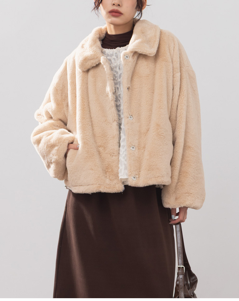 質感毛絨翻領厚外套長短雙版型