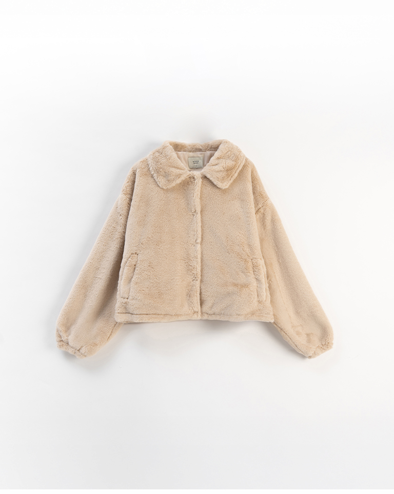 質感毛絨翻領厚外套長短雙版型-卡其 M/L