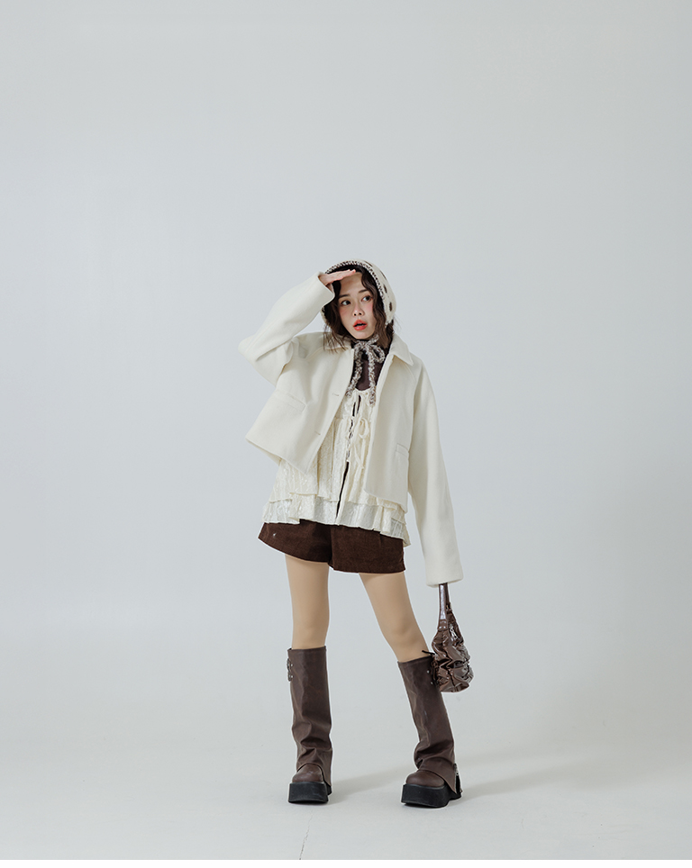 S~L身形實測!分尺寸皺皺木耳邊透膚高領長袖上衣