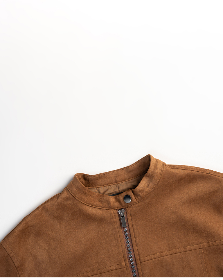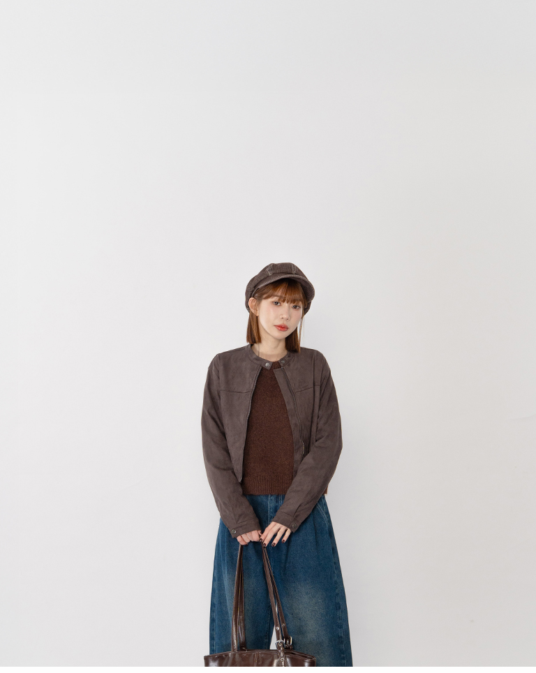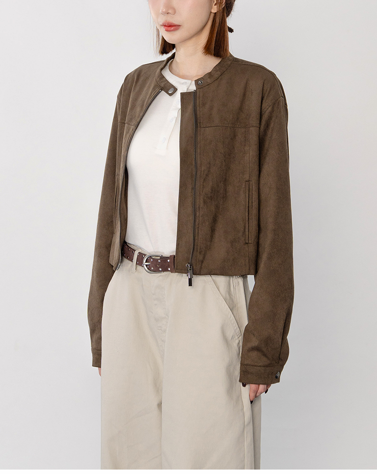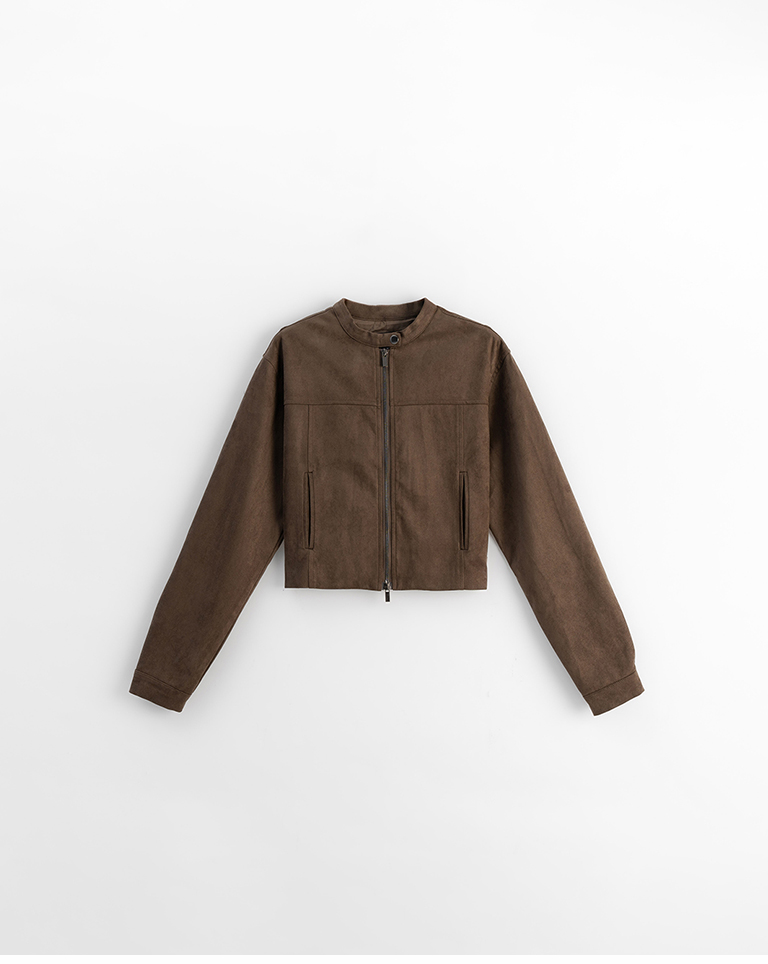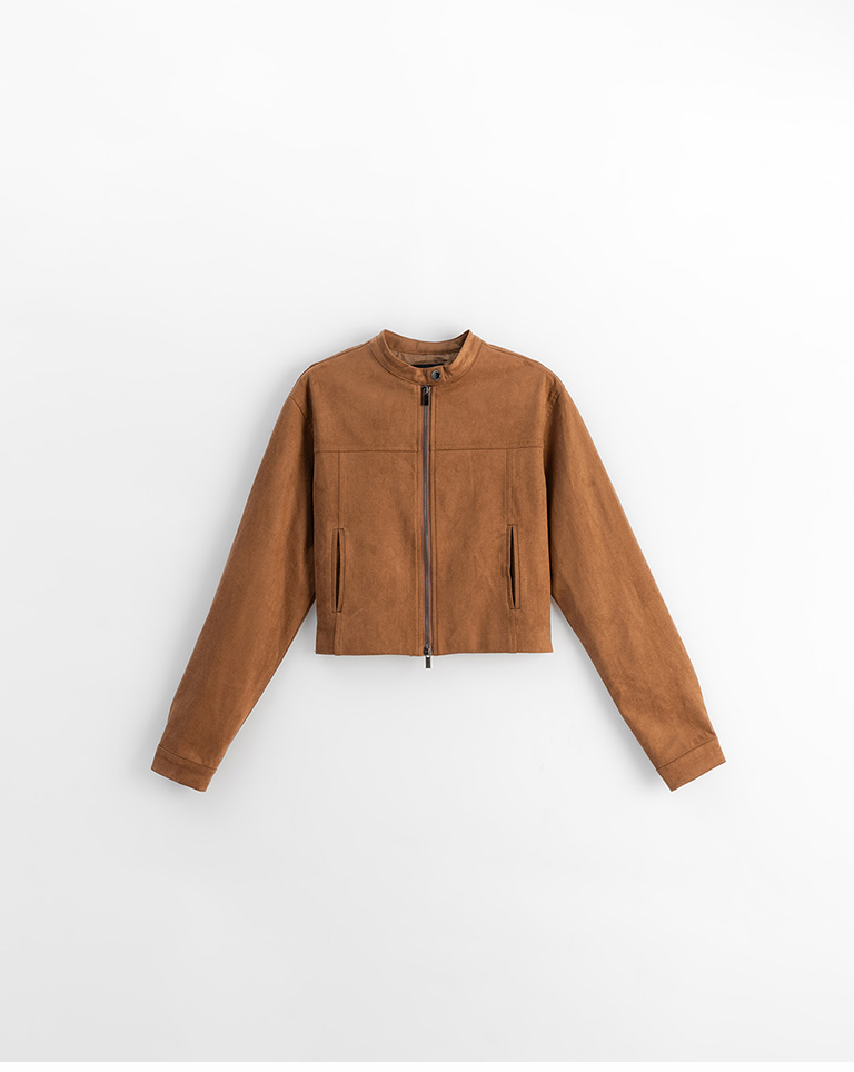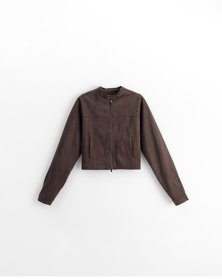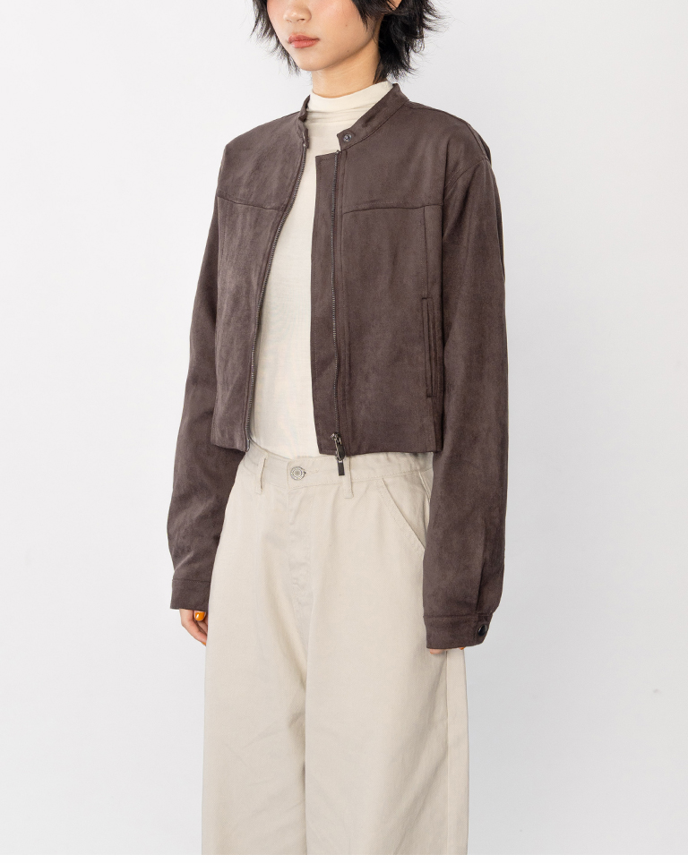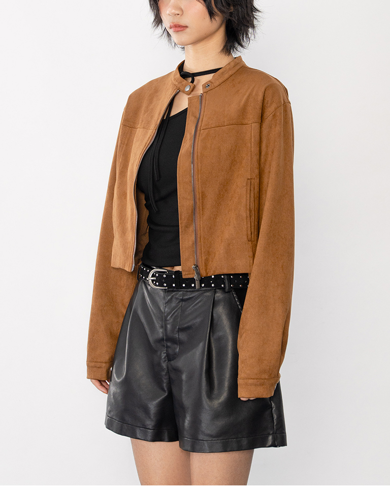 剪接設計短版麂皮夾克外套