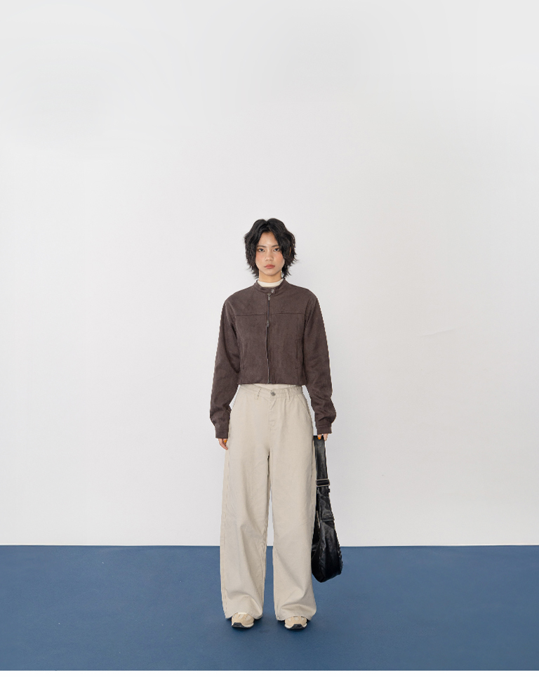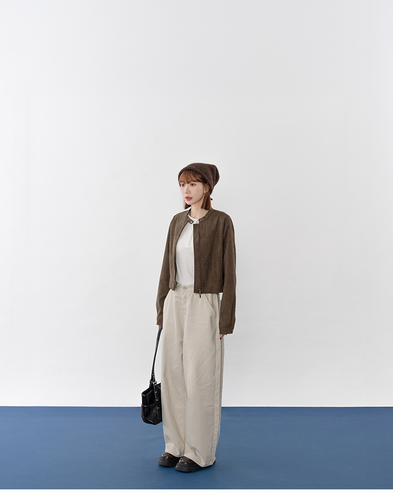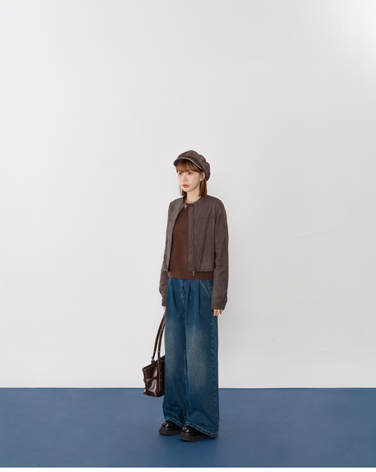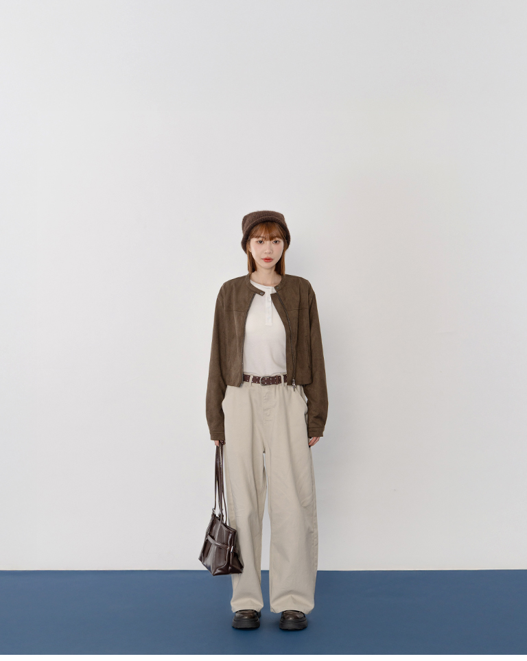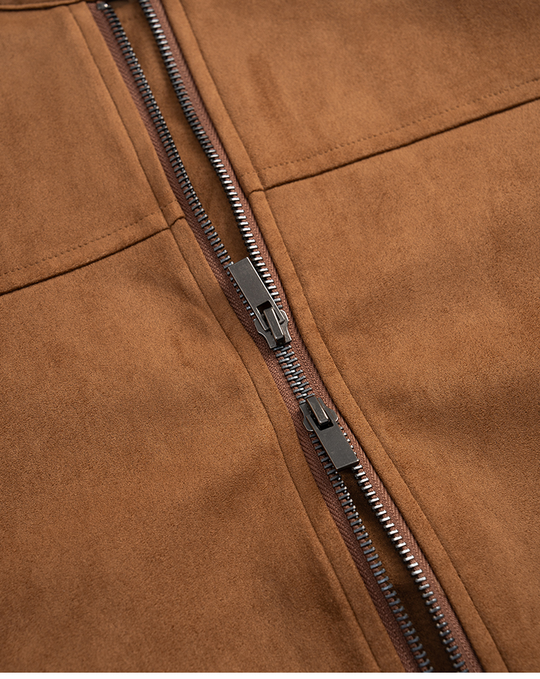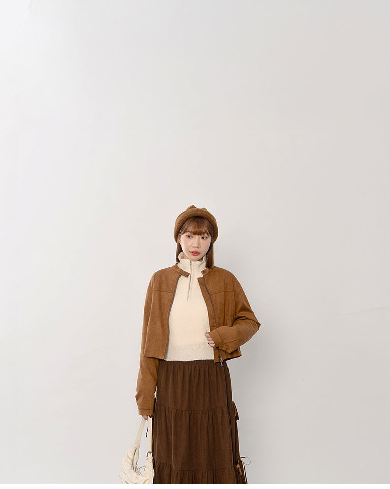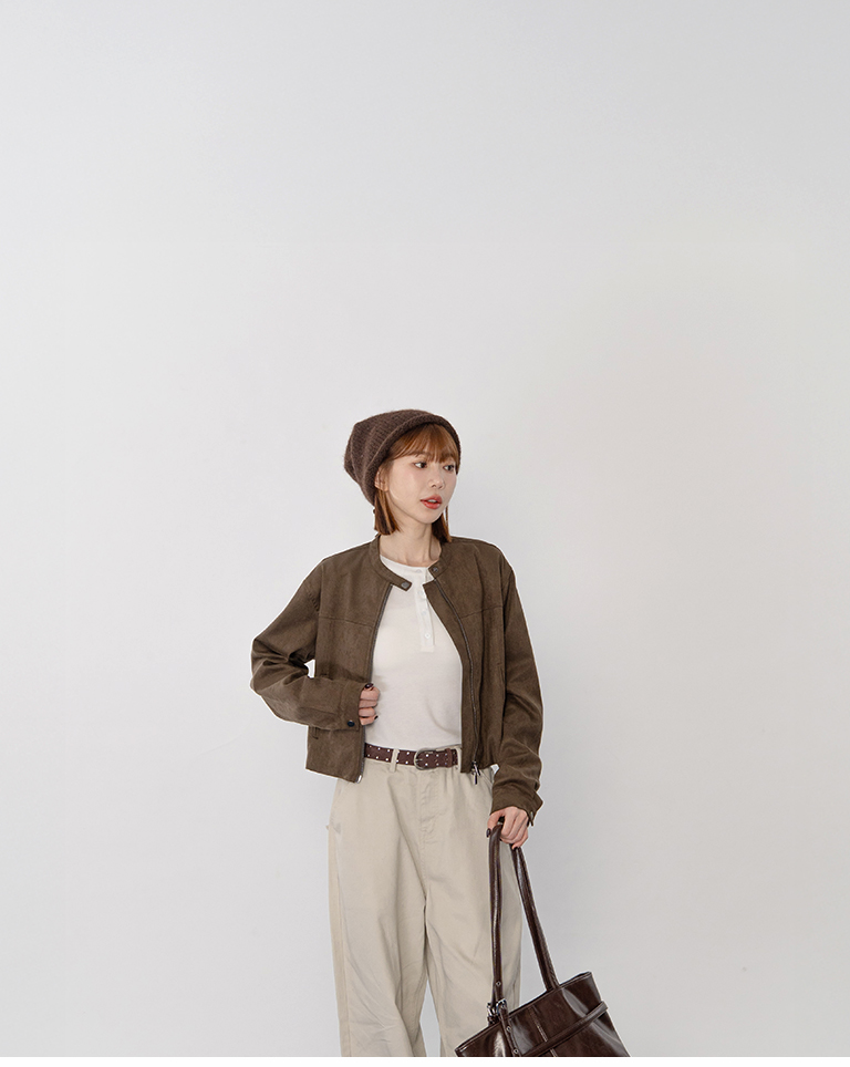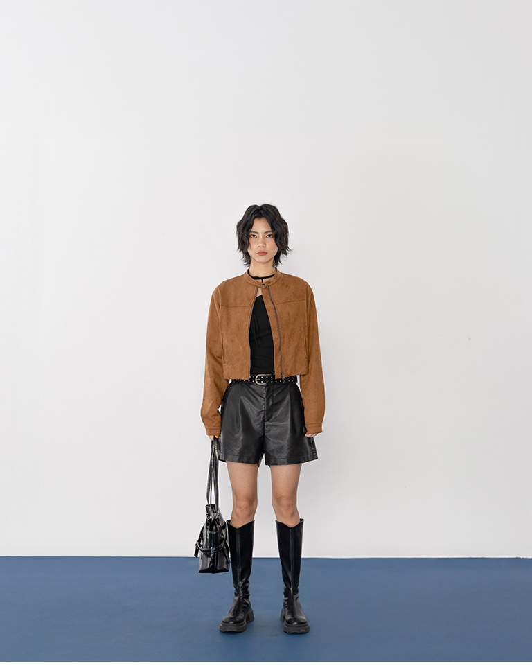 剪接設計短版麂皮夾克外套