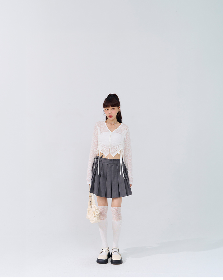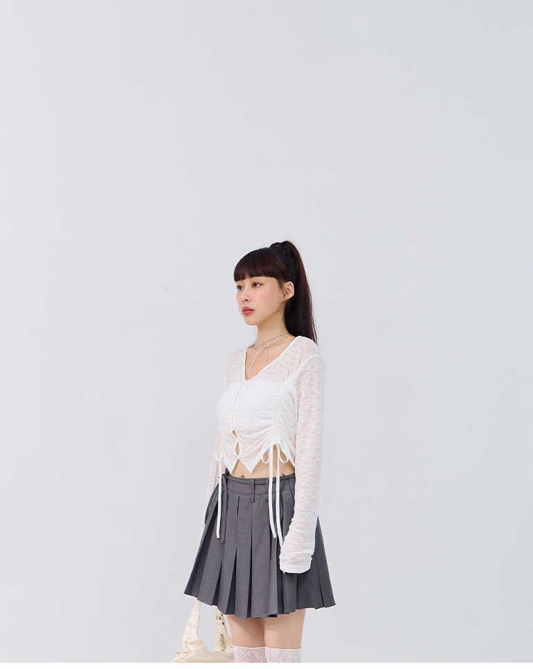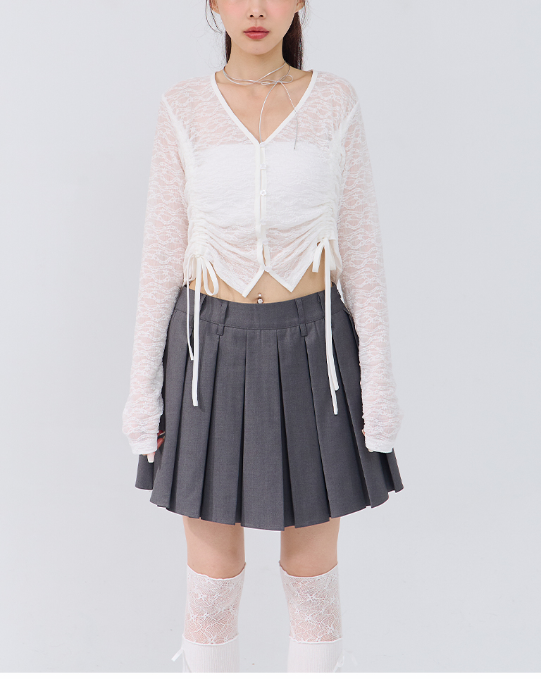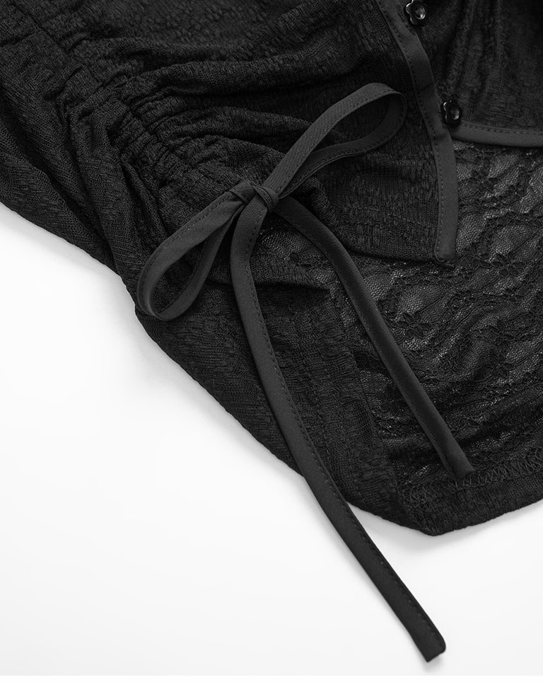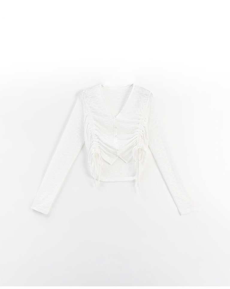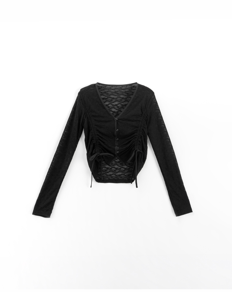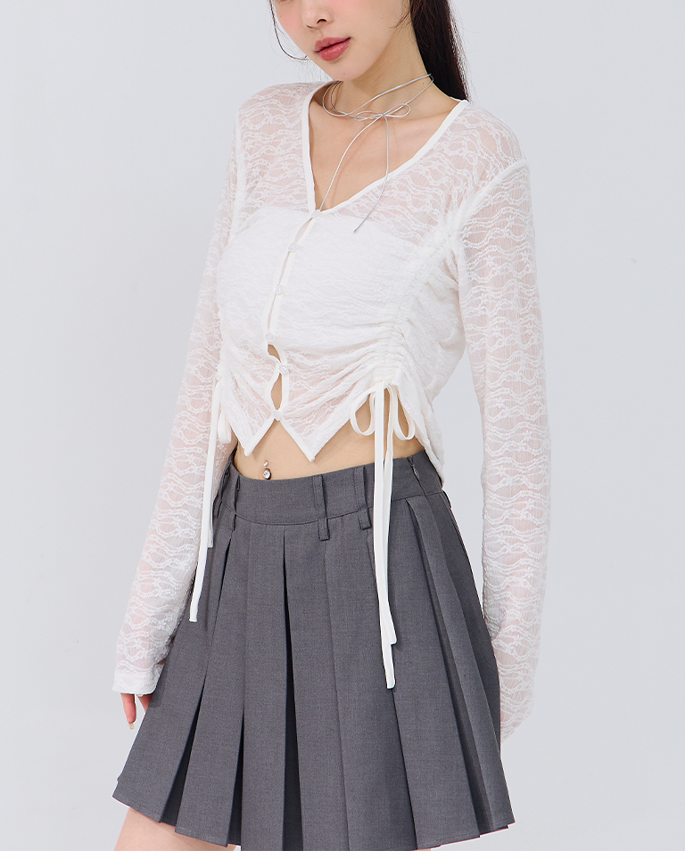 蕾絲鏤空短版抽繩開襟上衣