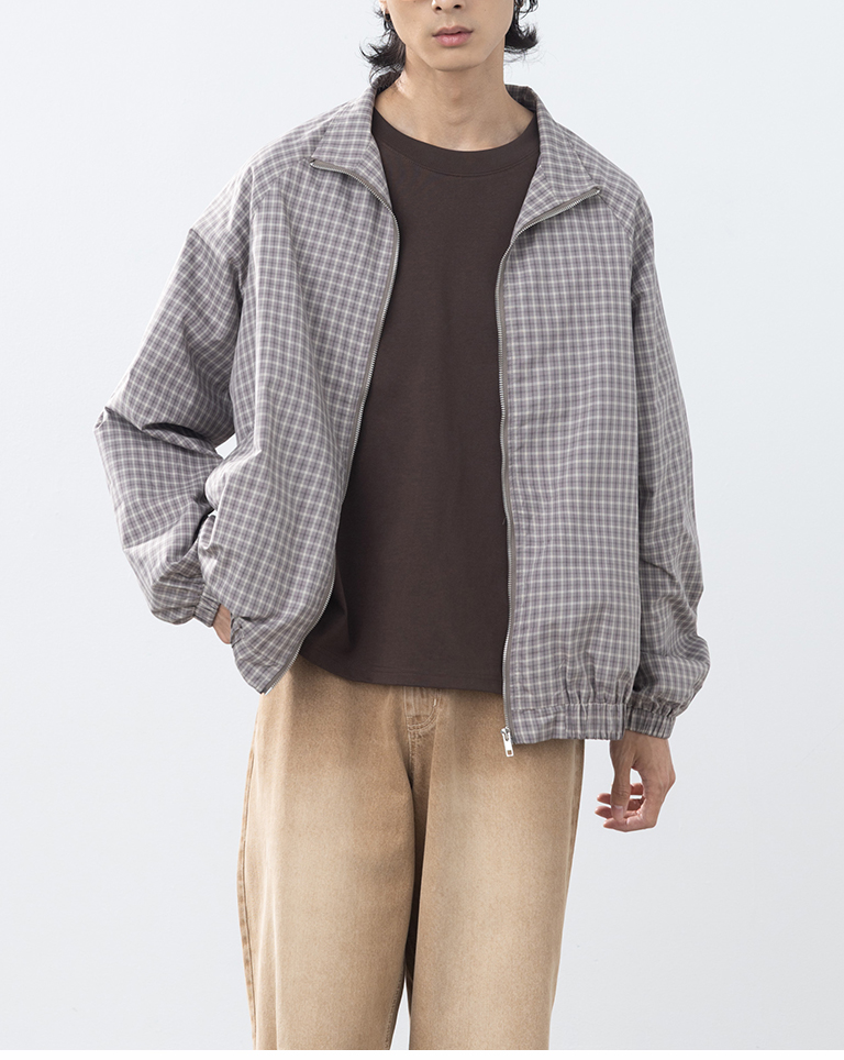 男裝 經典格紋立領夾克外套
