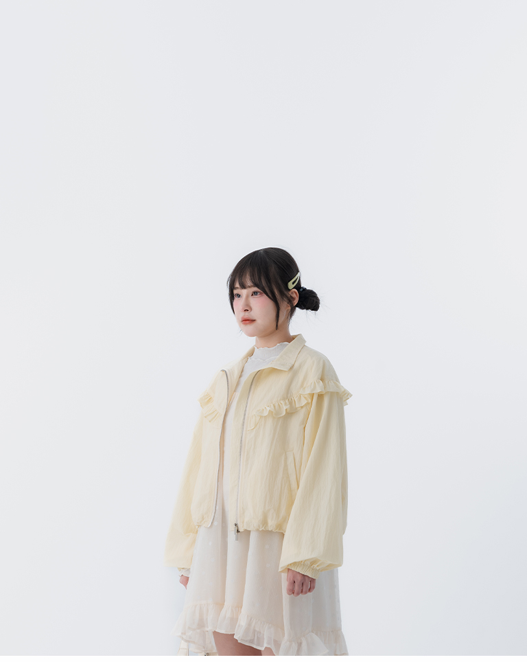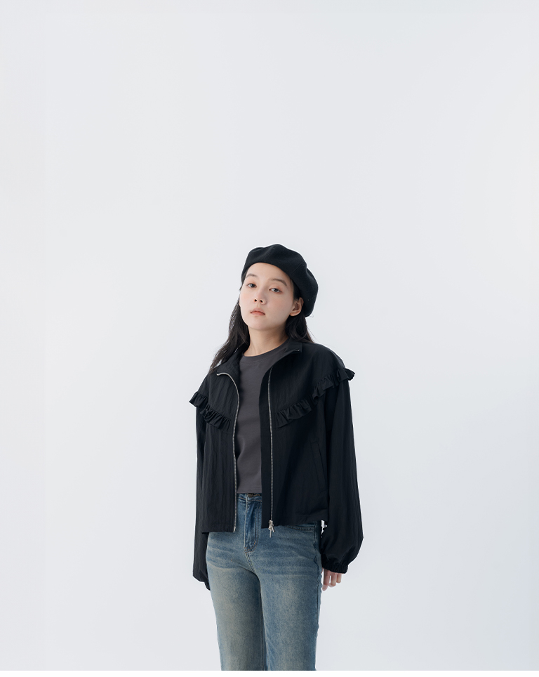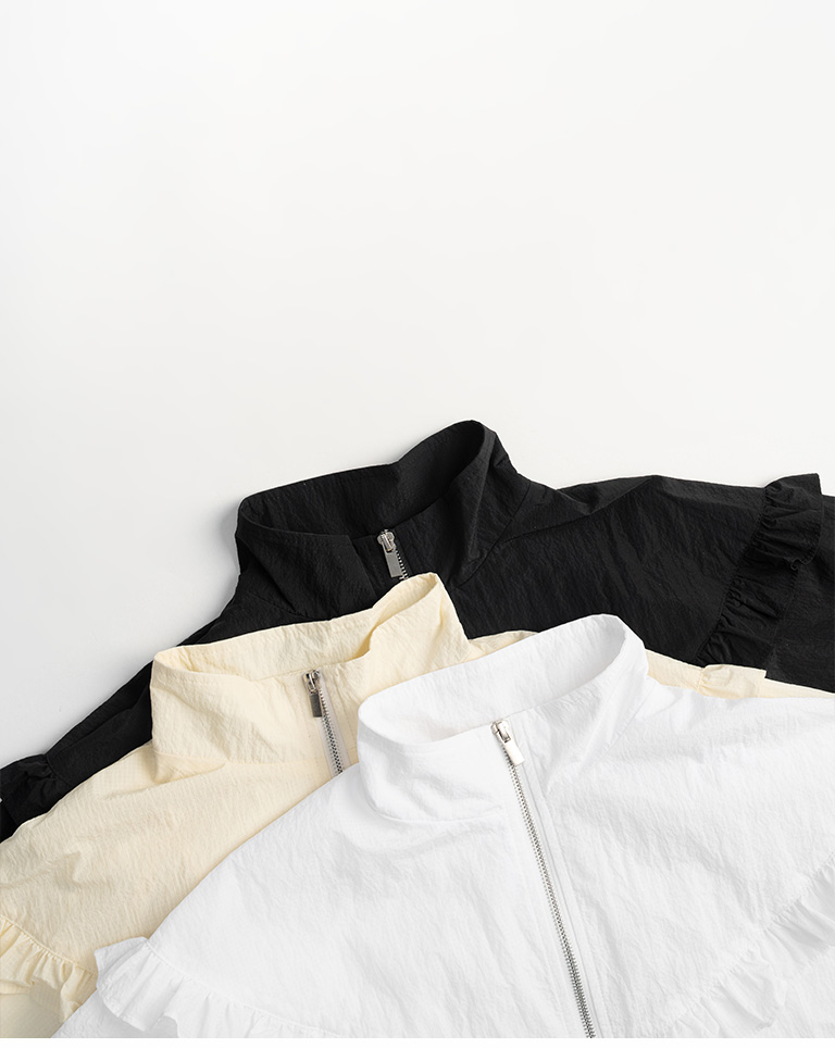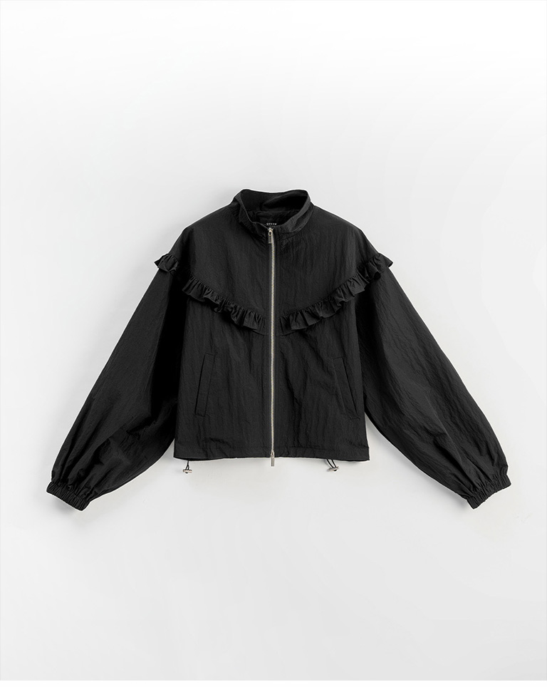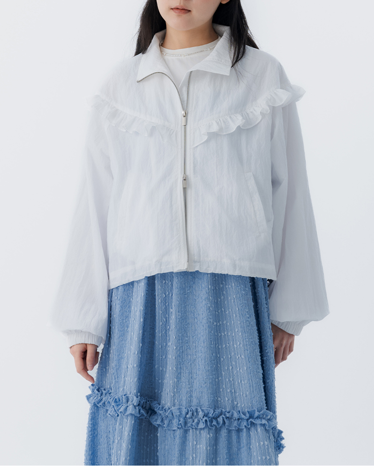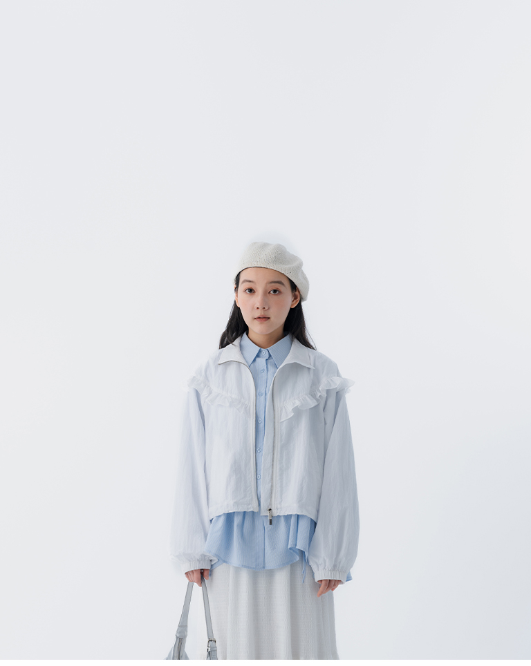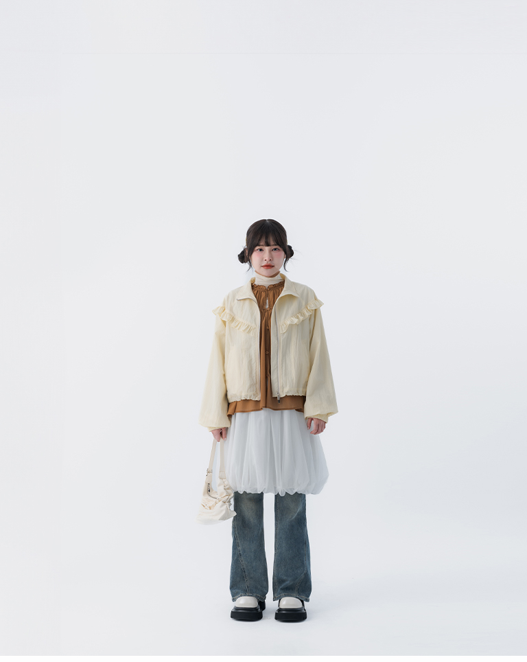 S~L身形實測!分尺寸皺皺木耳邊透膚高領長袖上衣