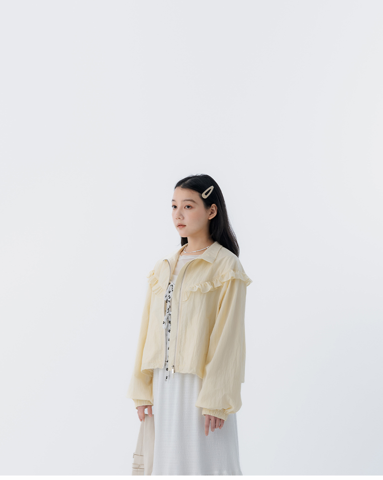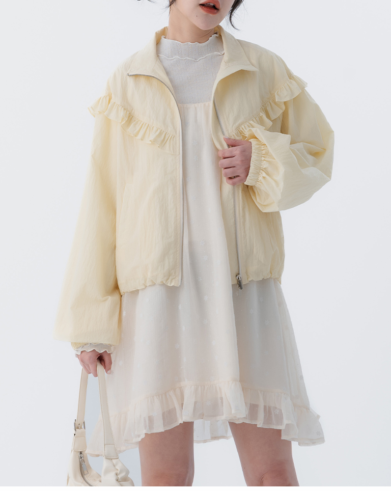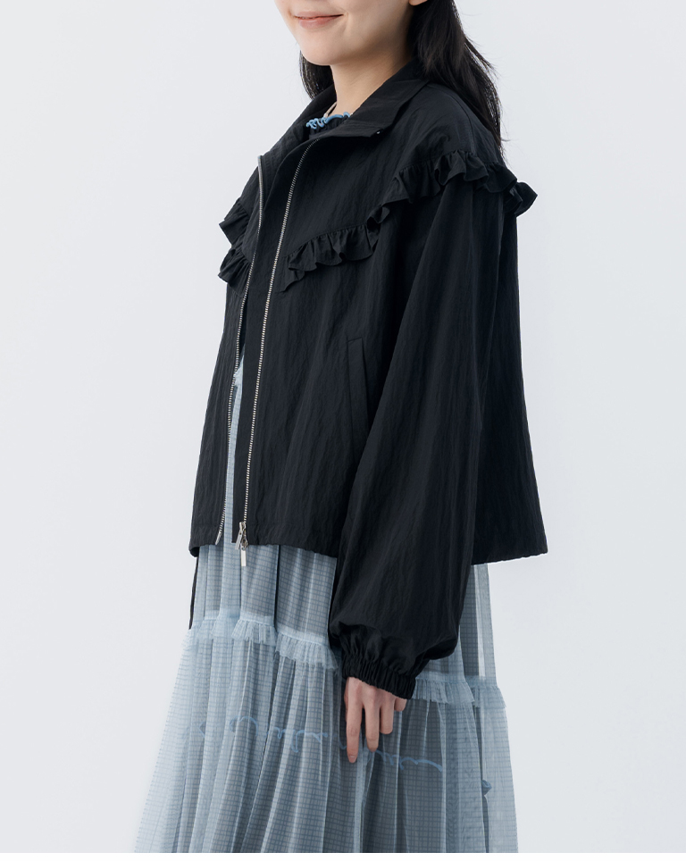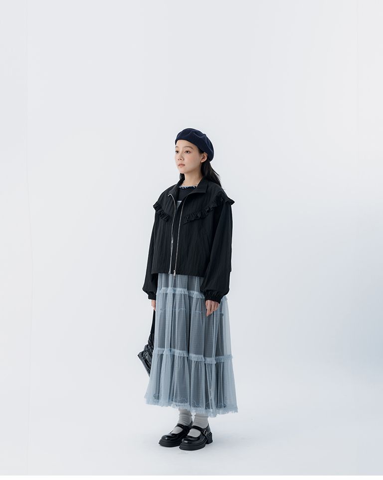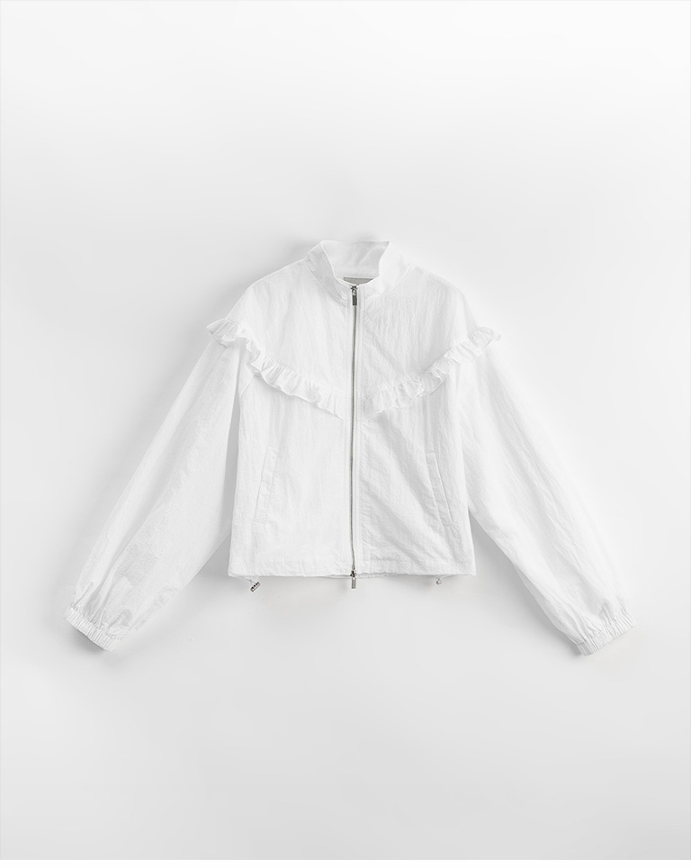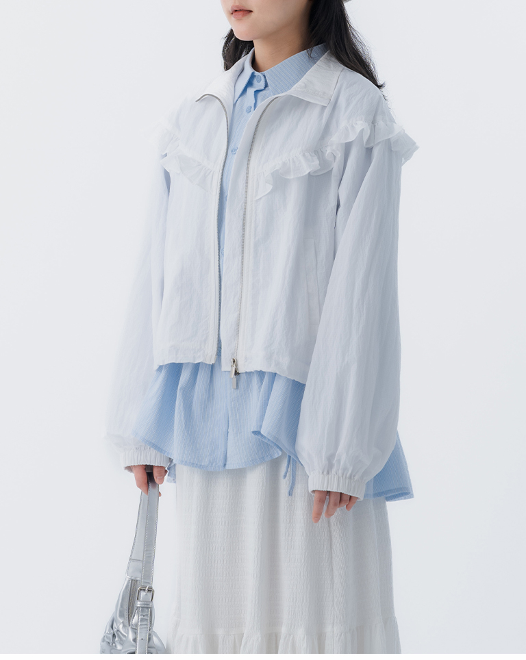 S~L身形實測!分尺寸皺皺木耳邊透膚高領長袖上衣