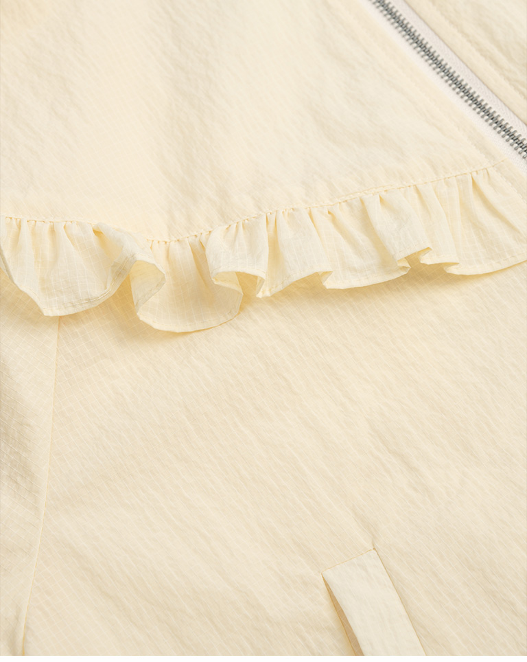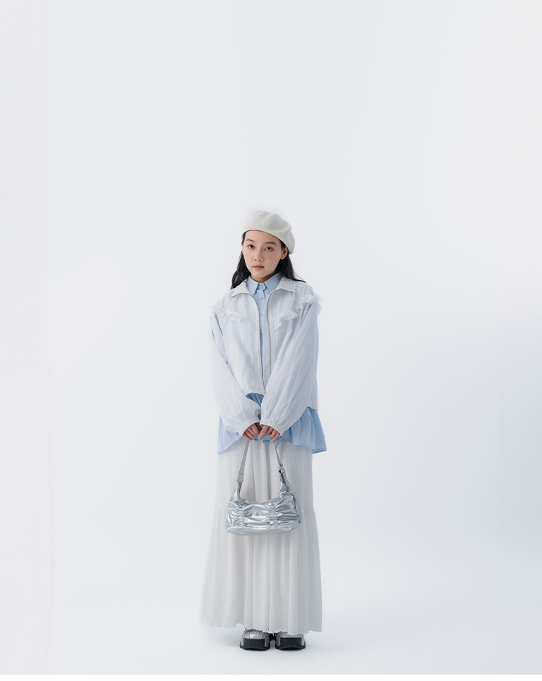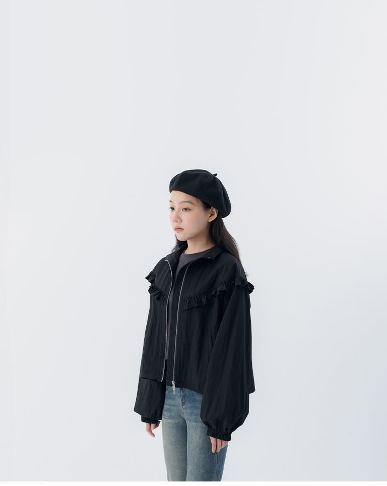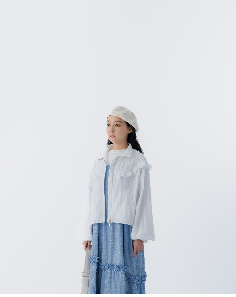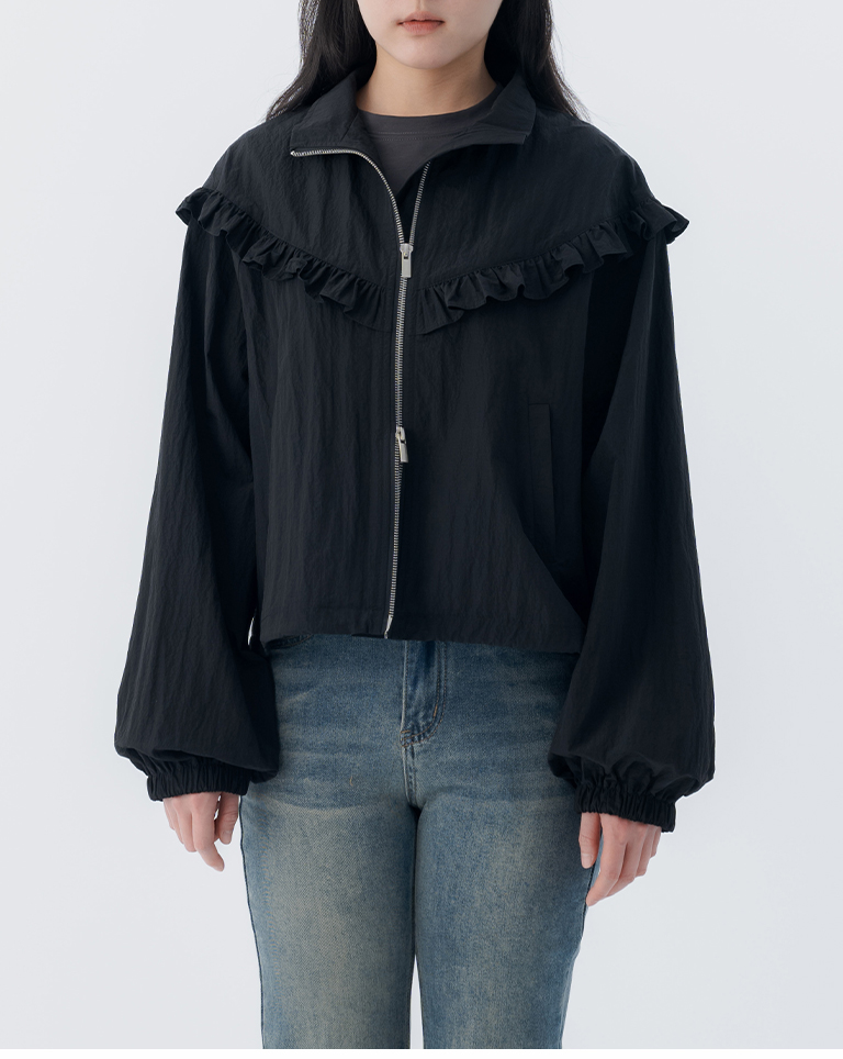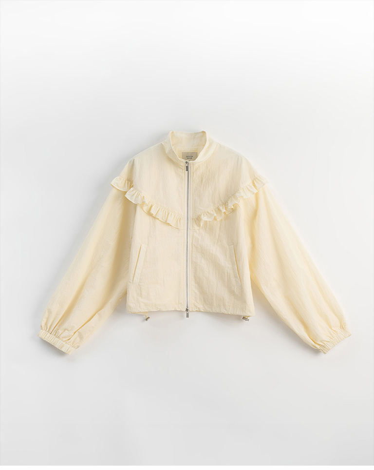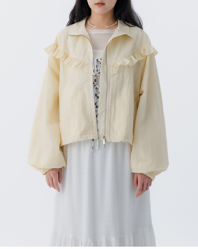 S~L身形實測!分尺寸皺皺木耳邊透膚高領長袖上衣