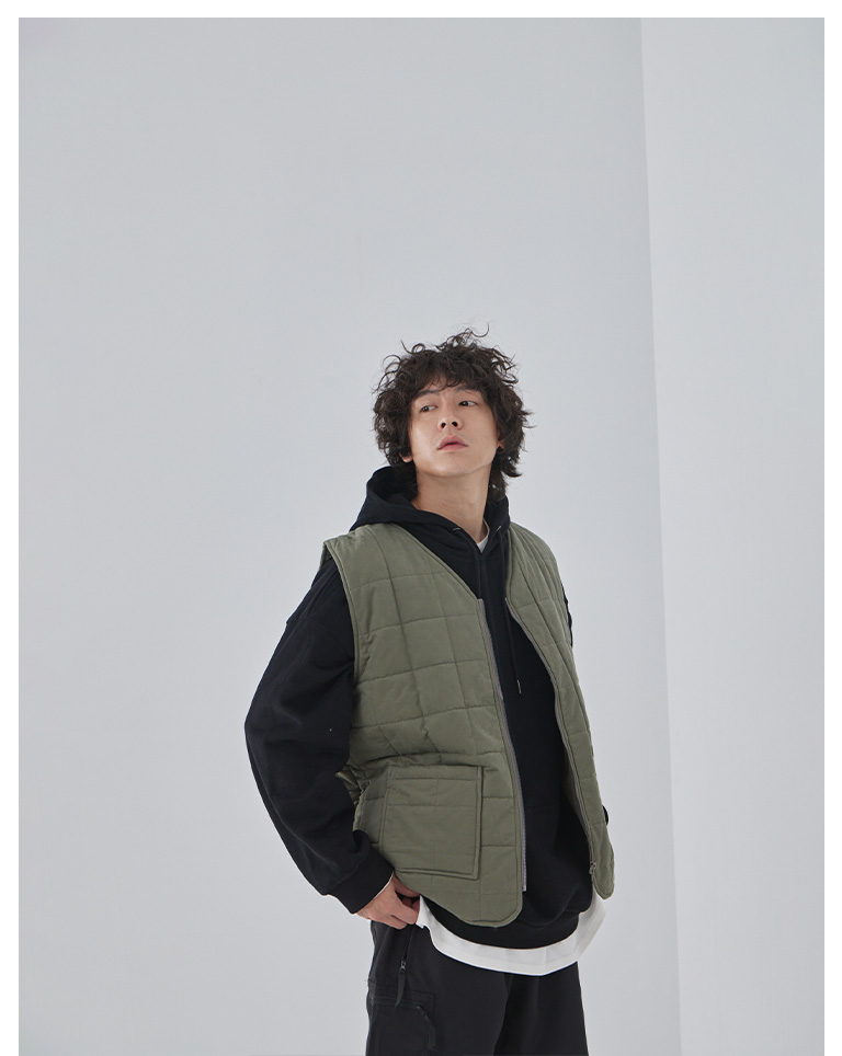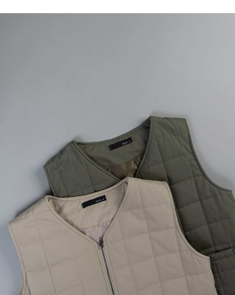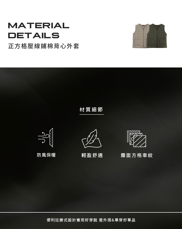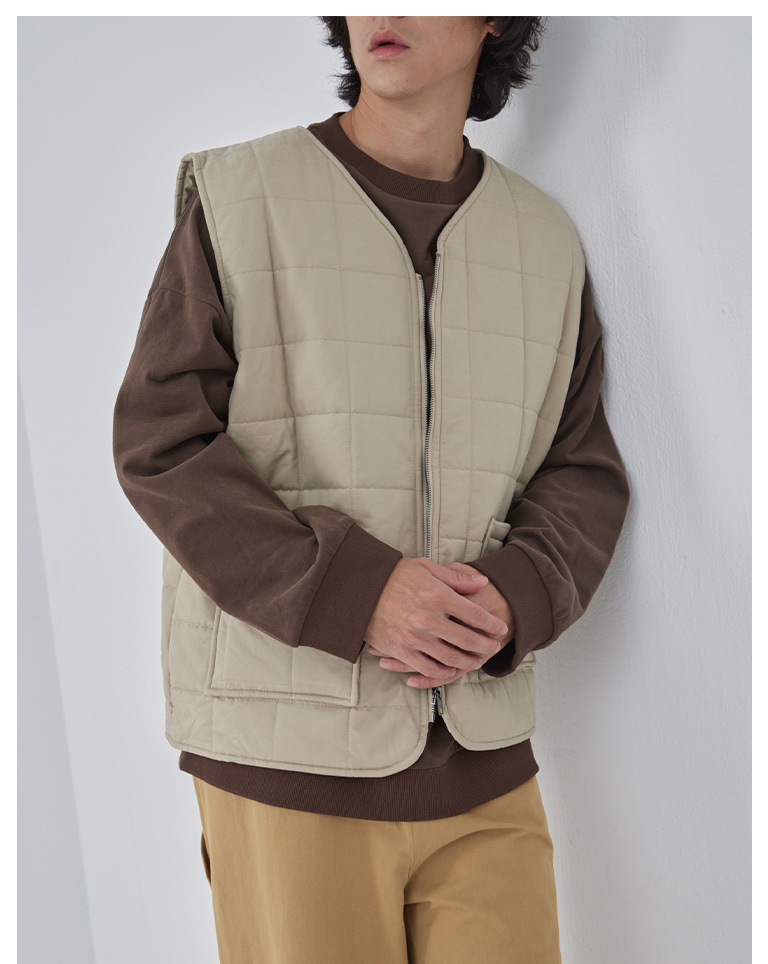 方格壓線鋪棉設計拉鍊背心 兩色售 M/L/XL