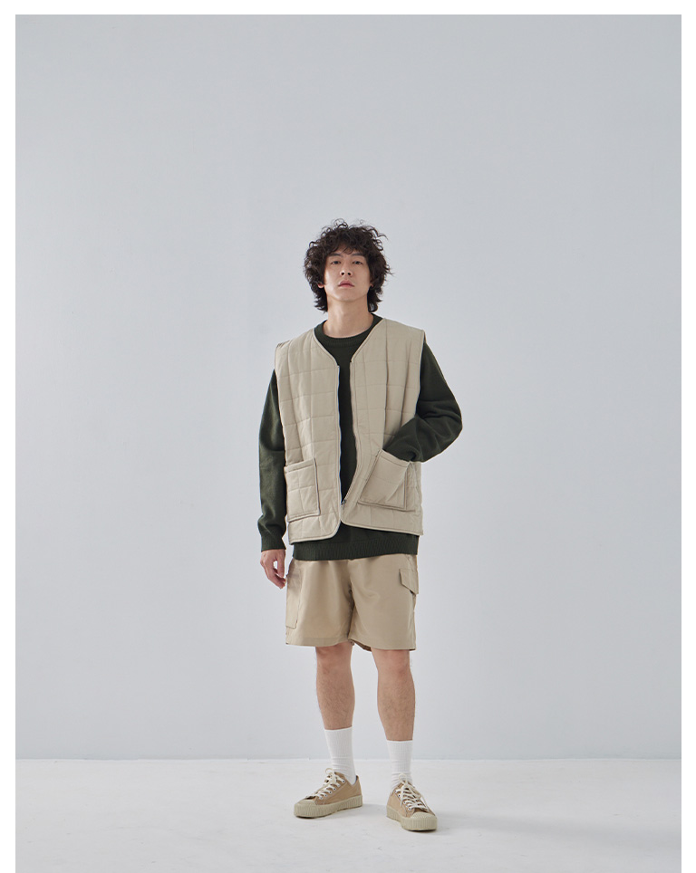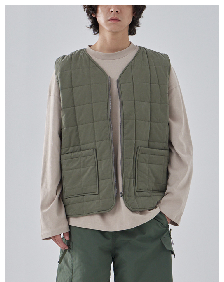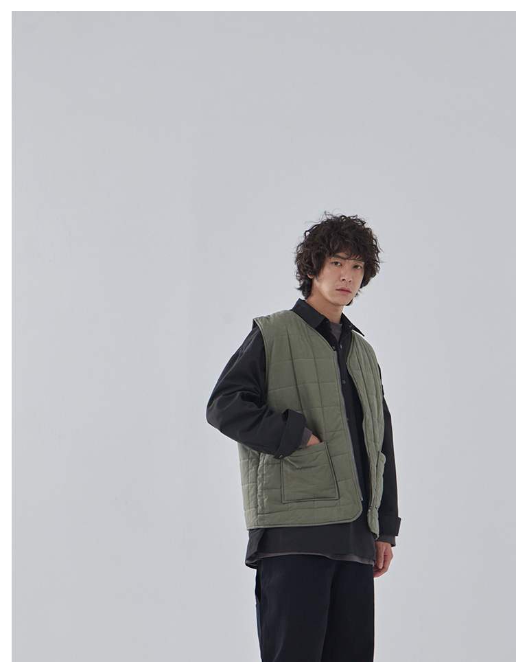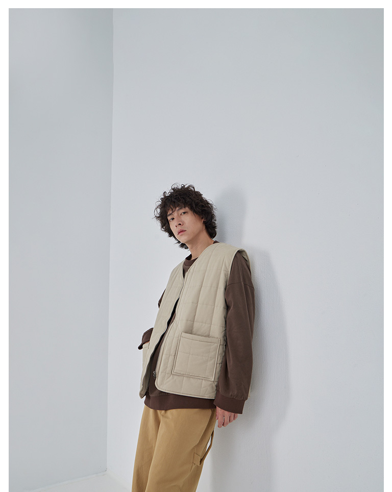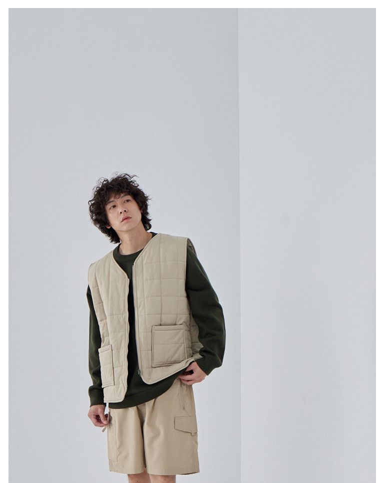方格壓線鋪棉設計拉鍊背心 兩色售 M/L/XL