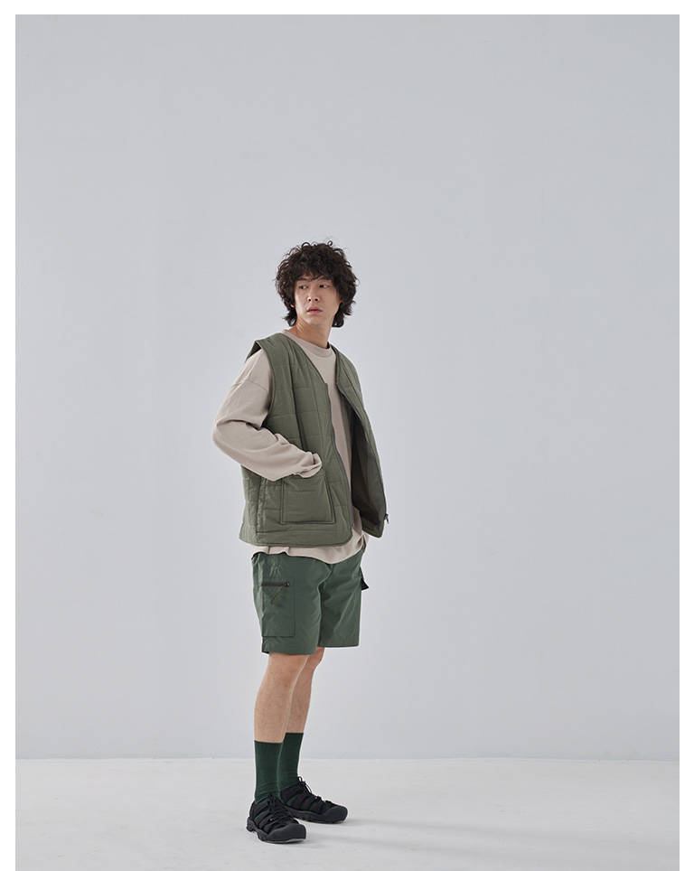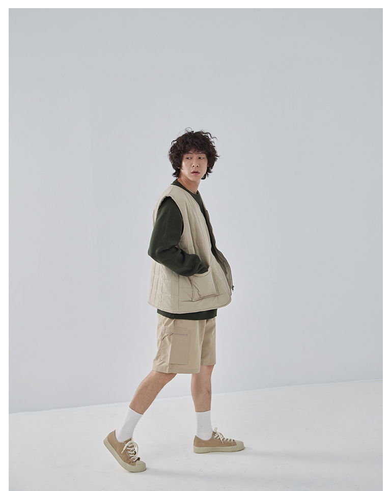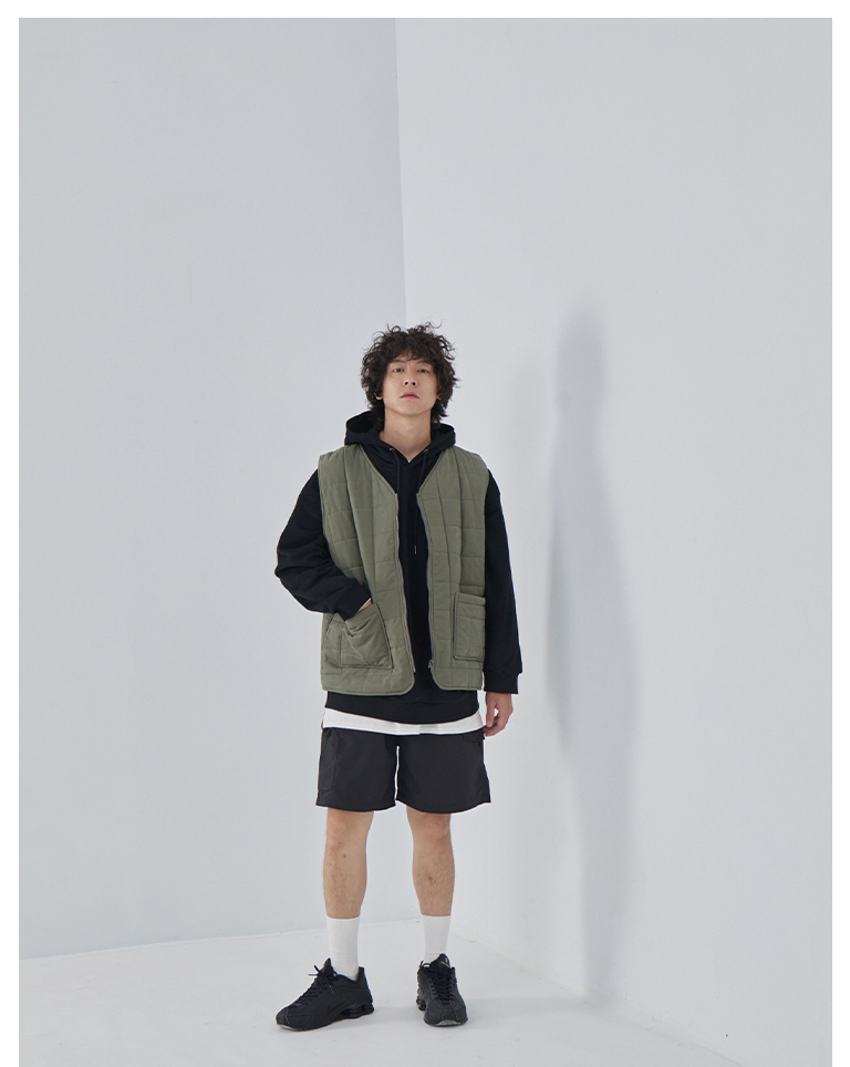 方格壓線鋪棉設計拉鍊背心