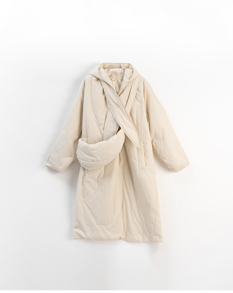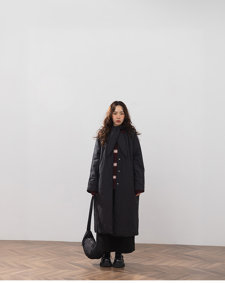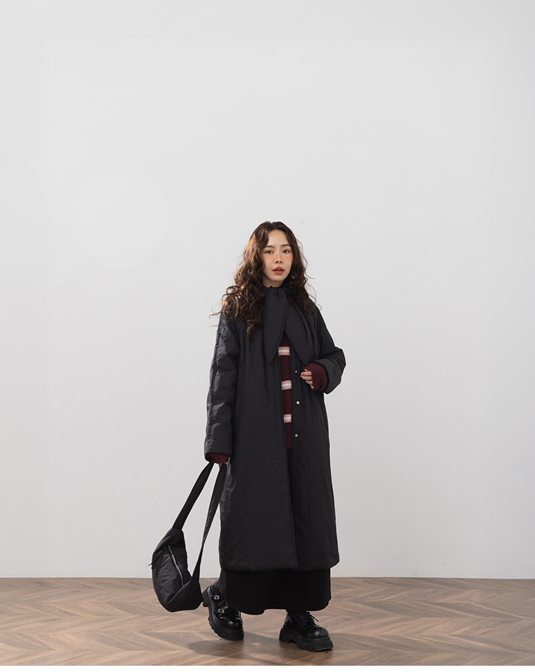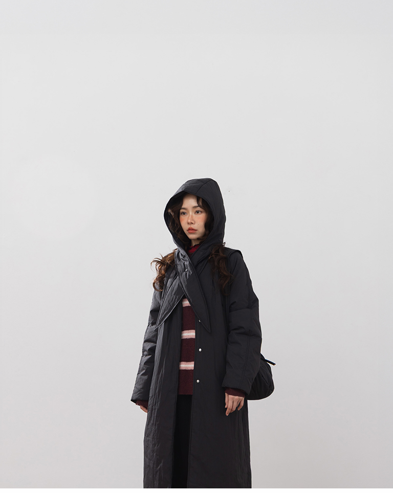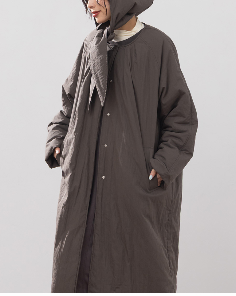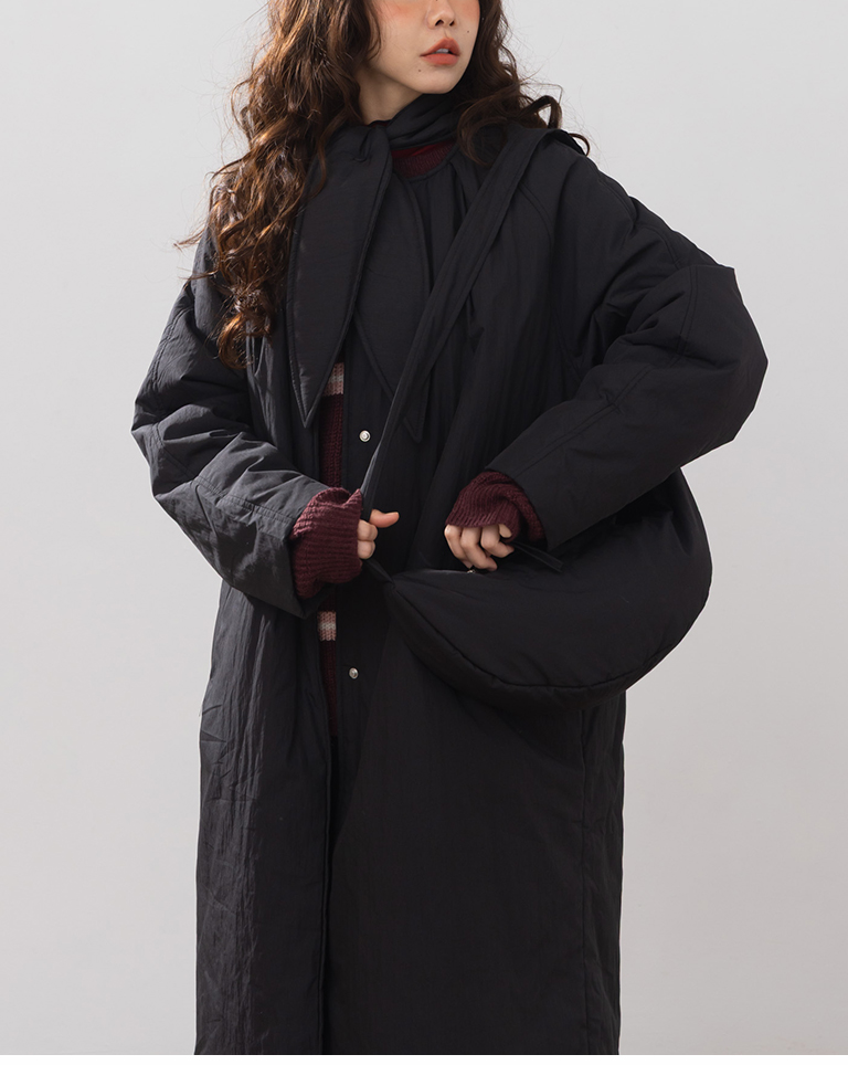 鋪棉長版外套附帽圍半月包三件組 三色售