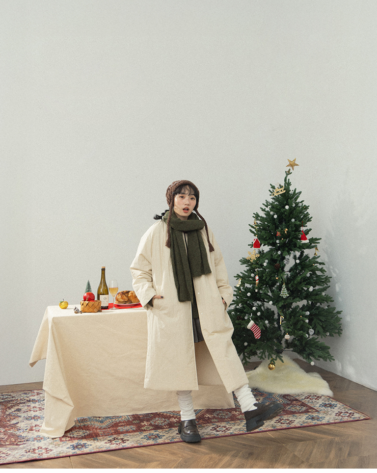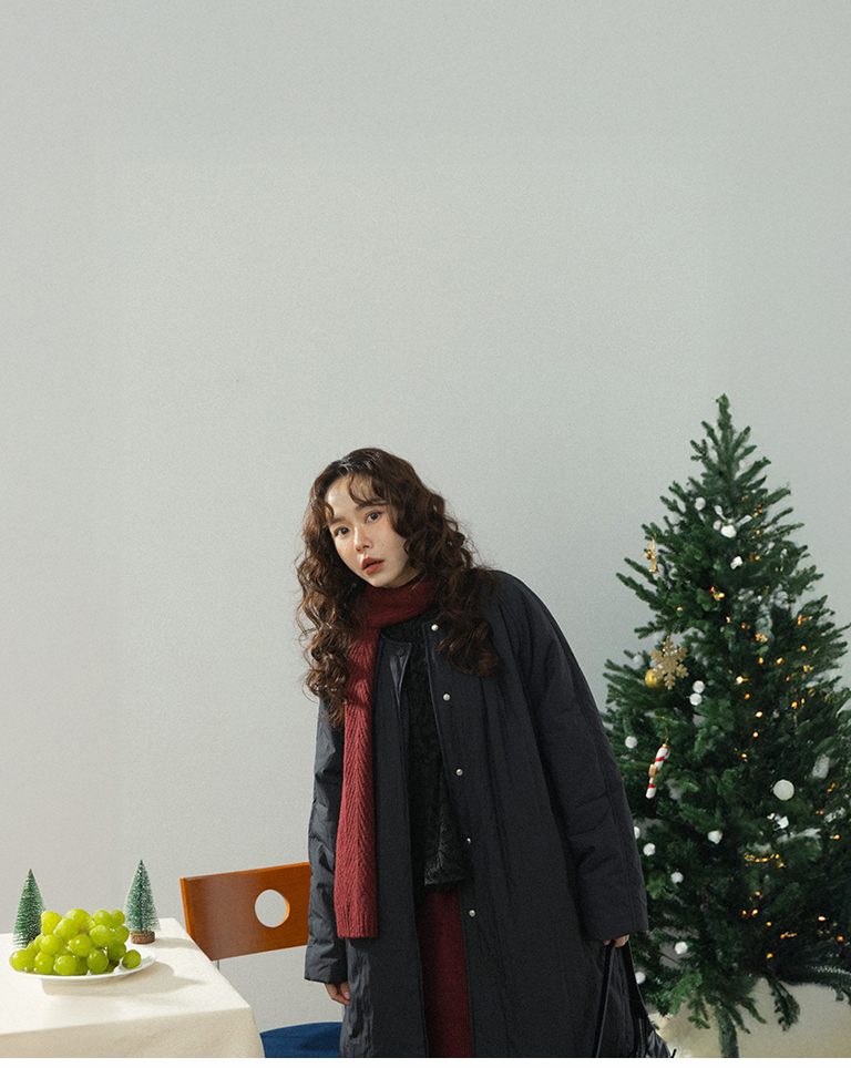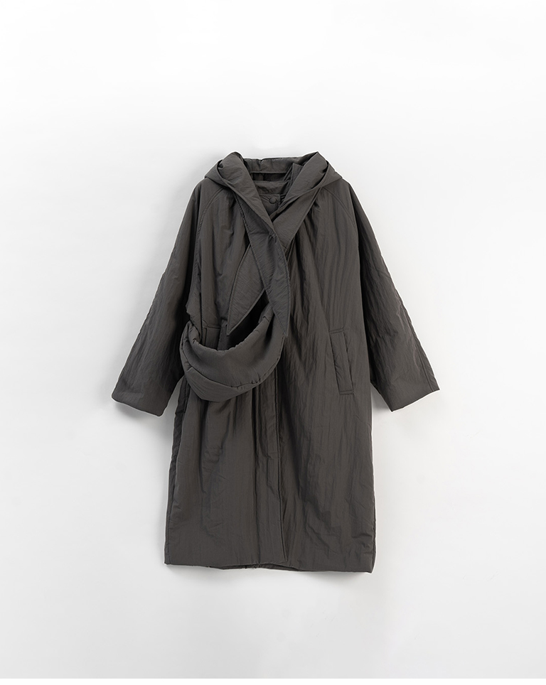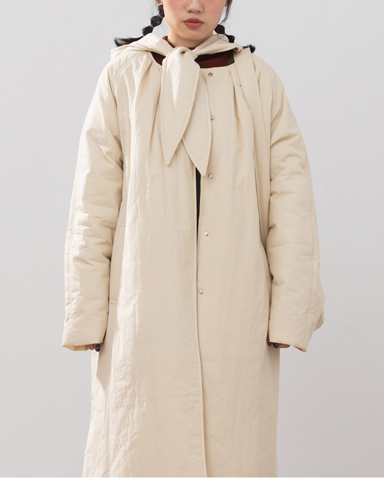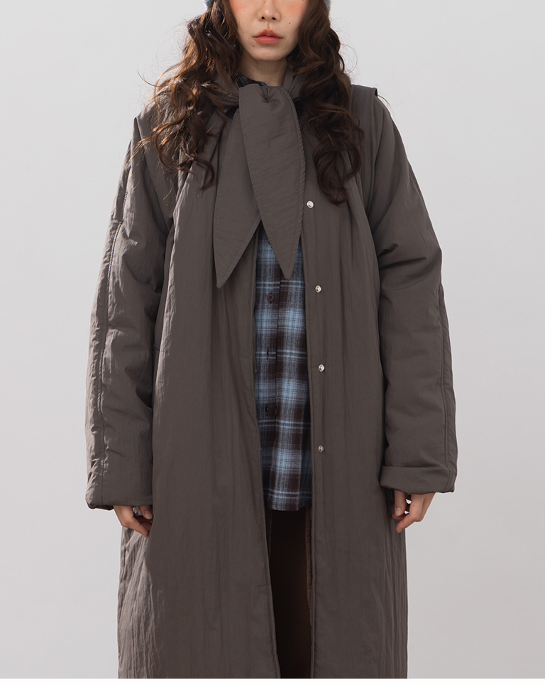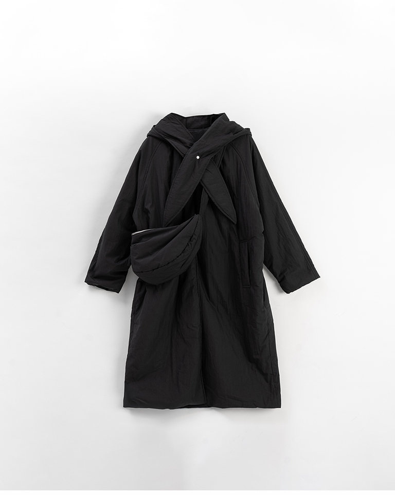 鋪棉長版外套附帽圍半月包三件組 三色售