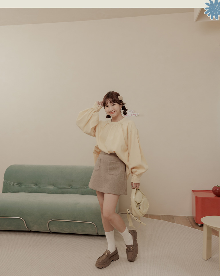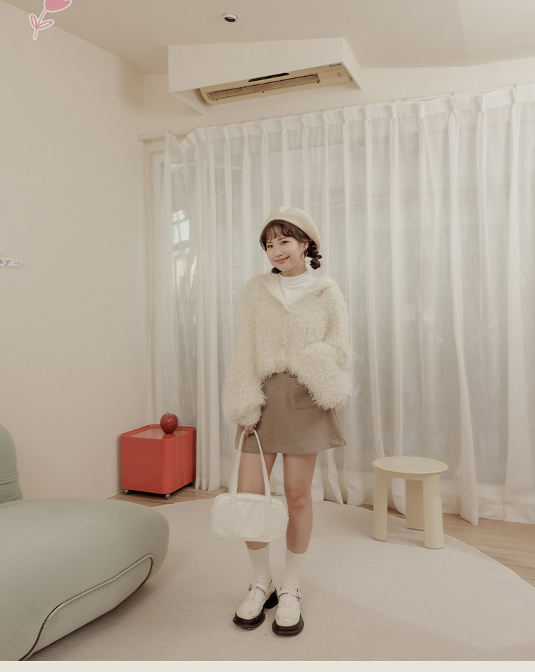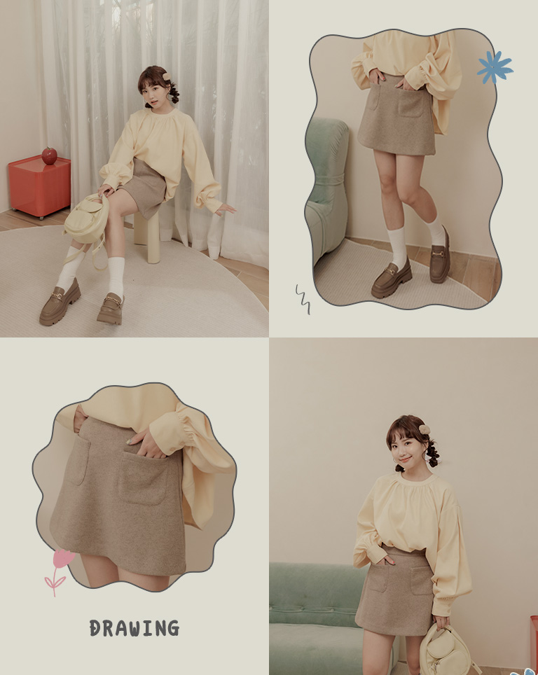 姿佑聯名 簡約口袋造型毛呢短裙-咖 S/M/L