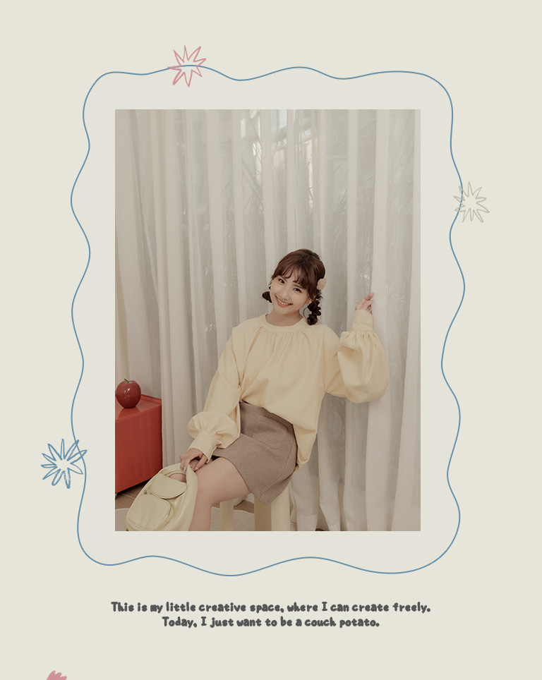 S~L身形實測!分尺寸皺皺木耳邊透膚高領長袖上衣