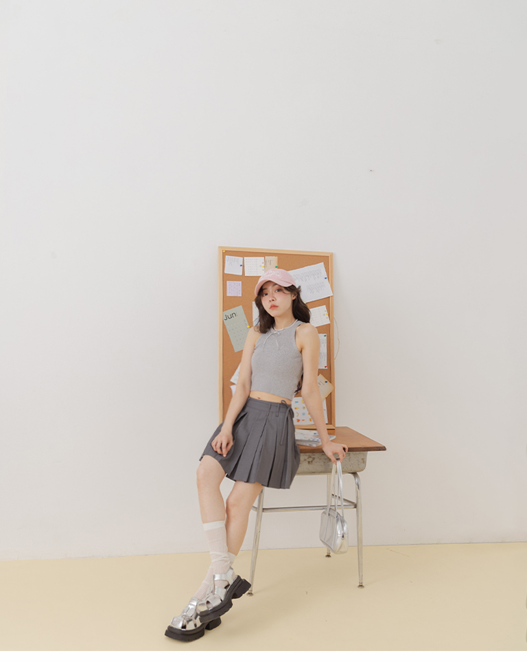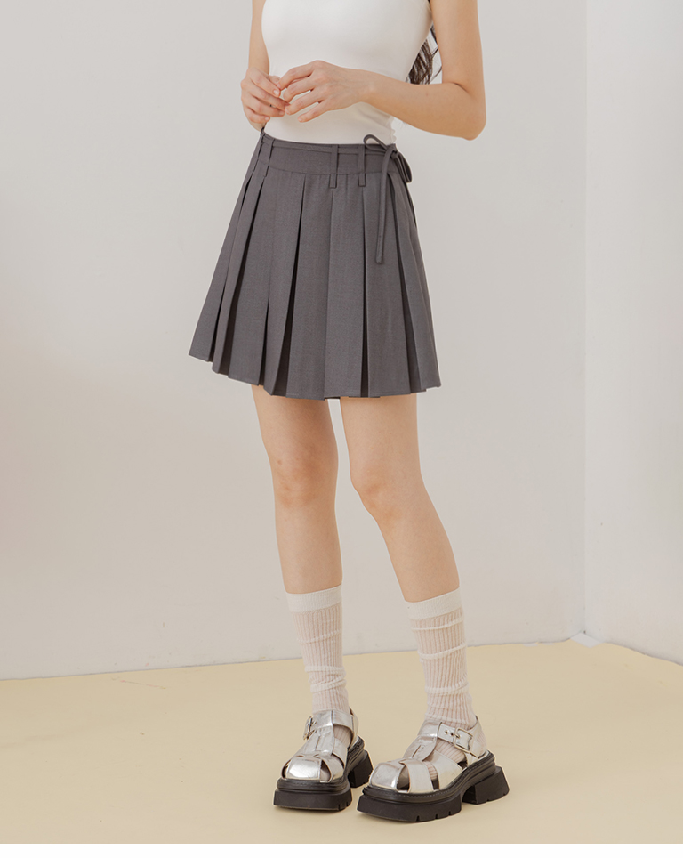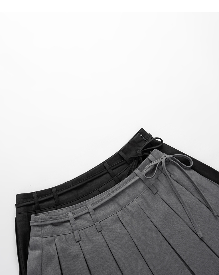 休閒綁帶百褶西裝短裙 兩色售 S/M/L