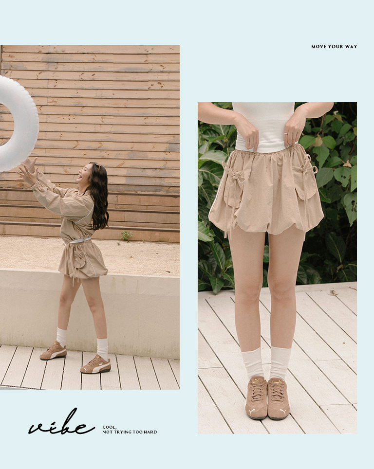 品子聯名 撞色立體口袋花苞短裙-卡其 S/M