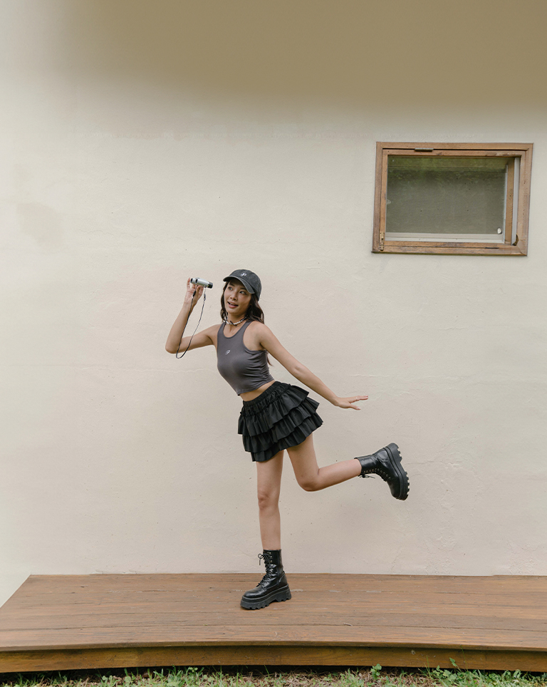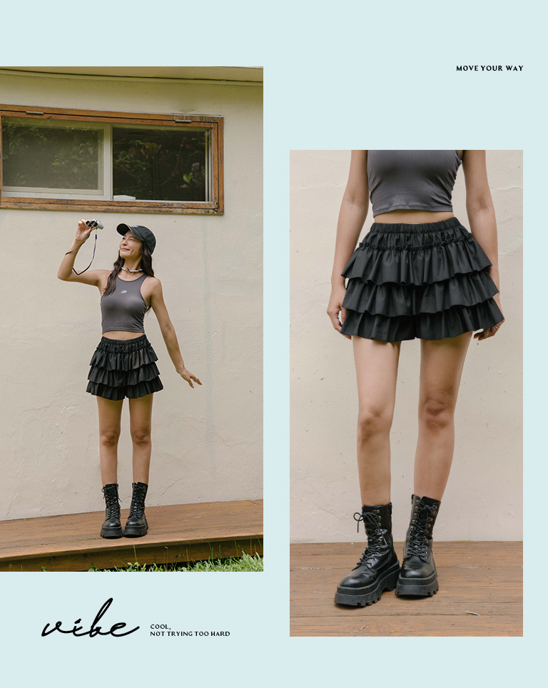 品子聯名 多層荷葉傘擺蛋糕短裙-黑S/M/L