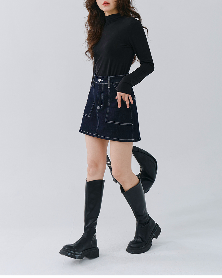 S~L身形實測!分尺寸皺皺木耳邊透膚高領長袖上衣