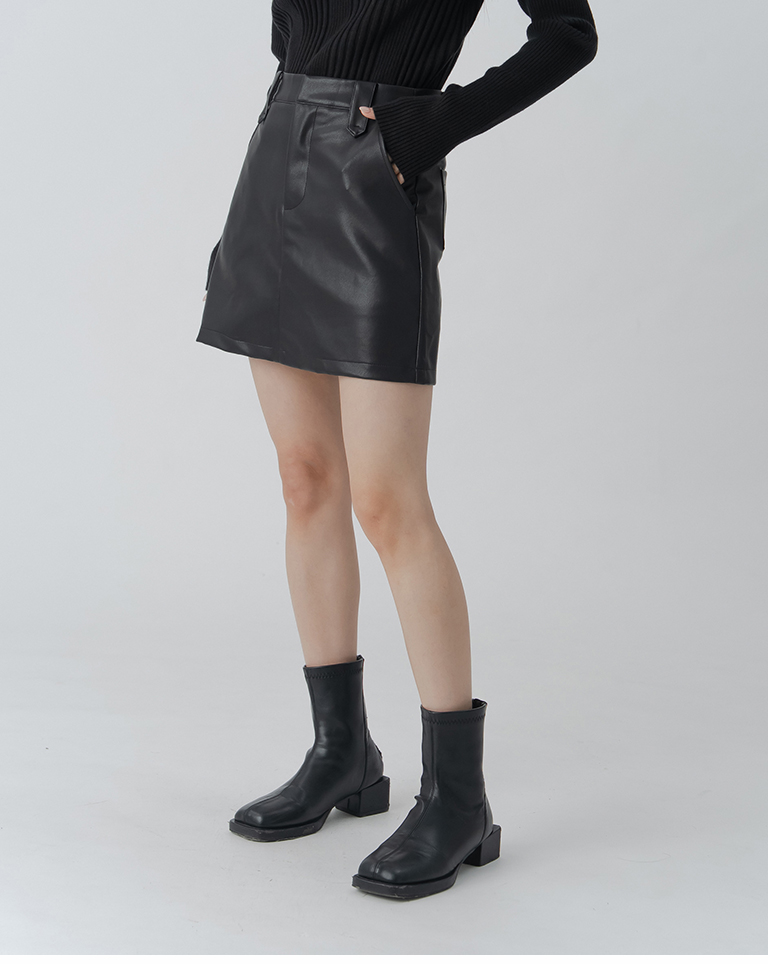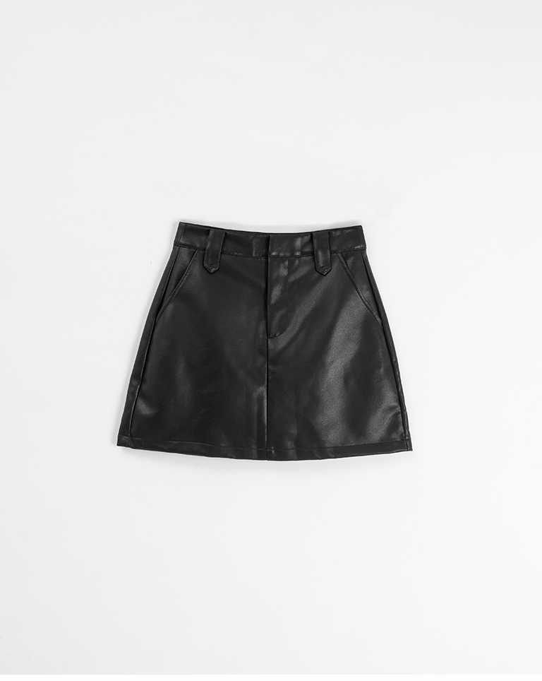 質感素面設計A字皮革短裙-黑 S/M/L