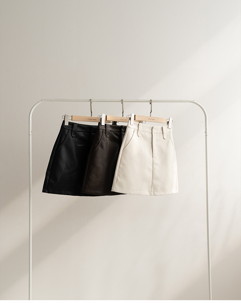 質感素面設計A字皮革短裙
