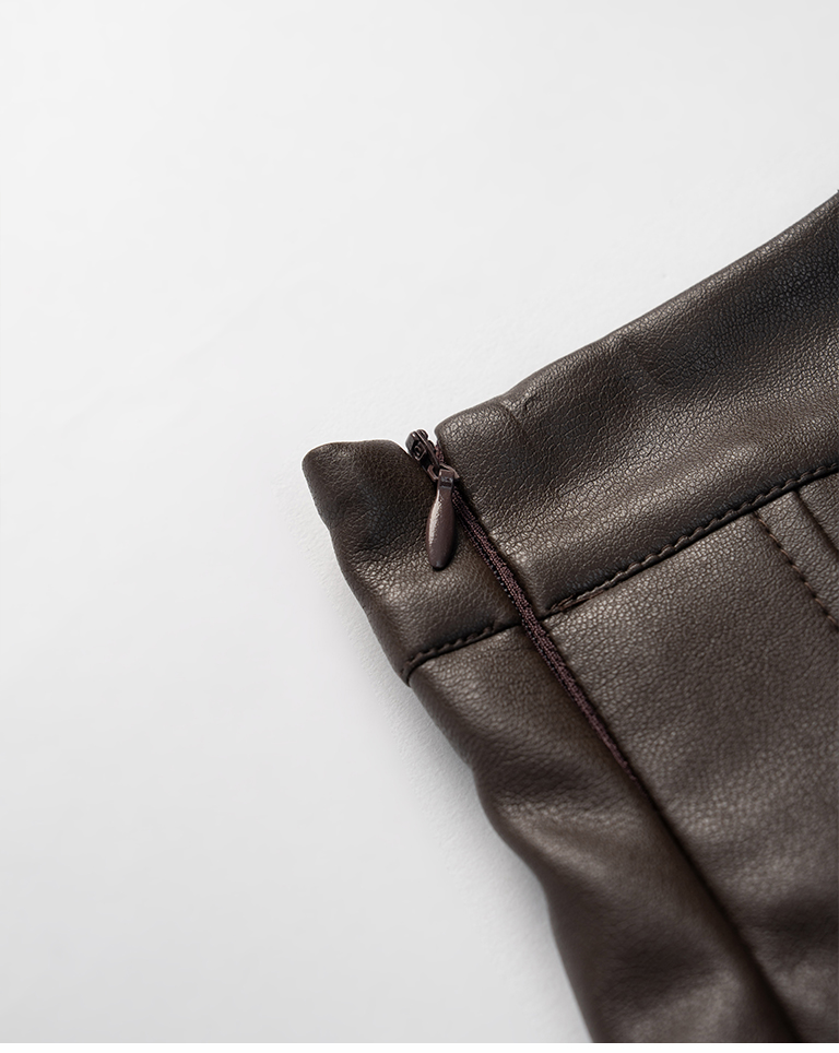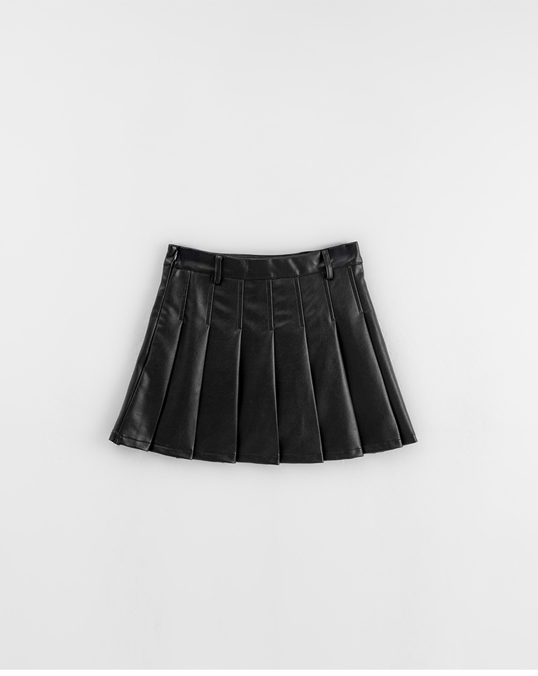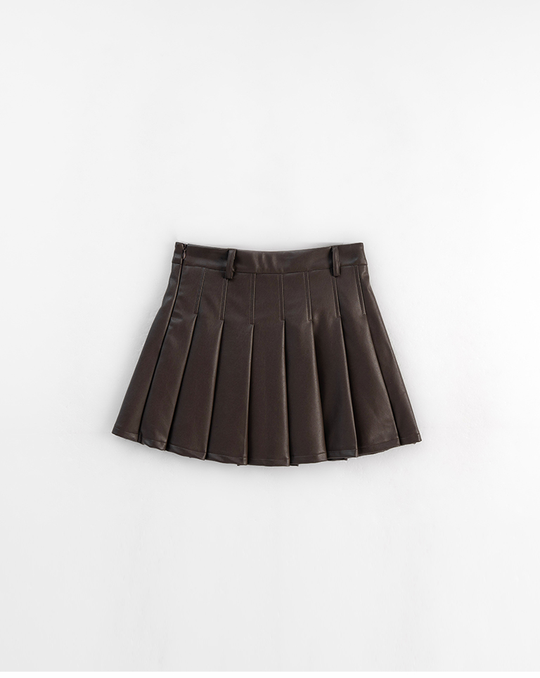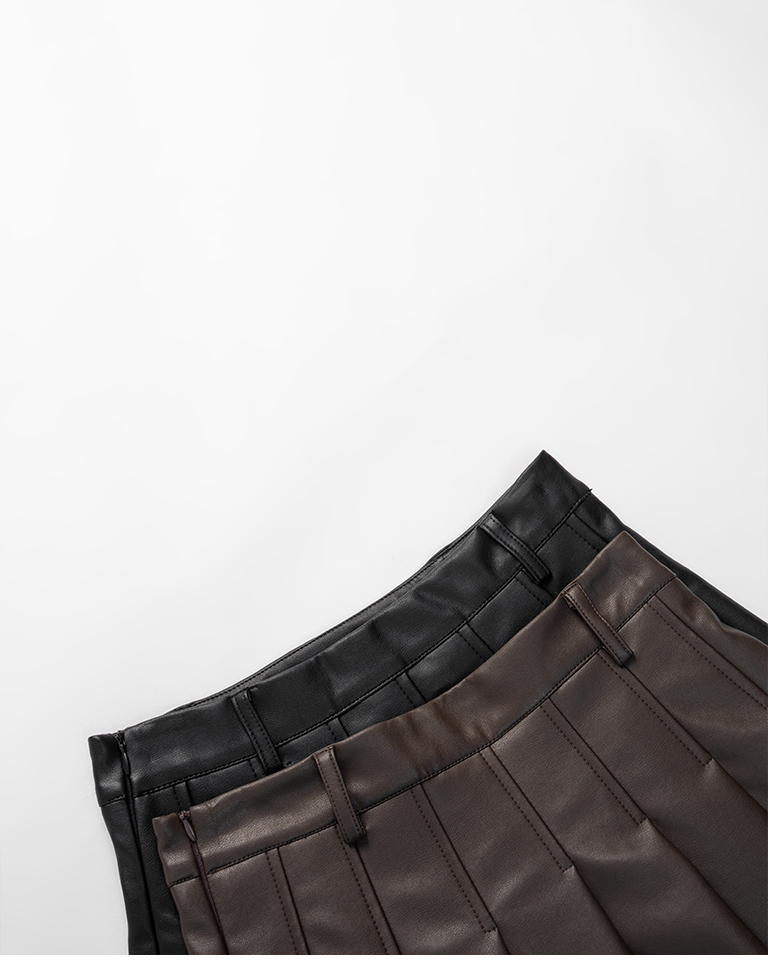 素面百褶壓線皮革短裙 兩色售 S/M/L