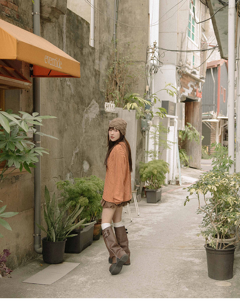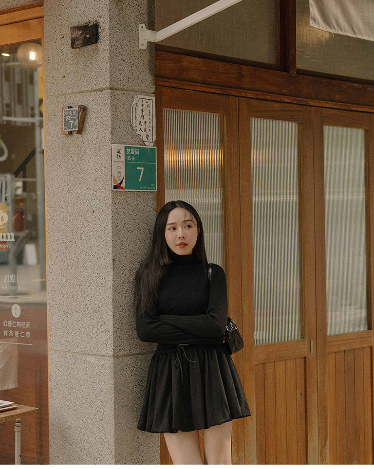 S~L身形實測!分尺寸皺皺木耳邊透膚高領長袖上衣