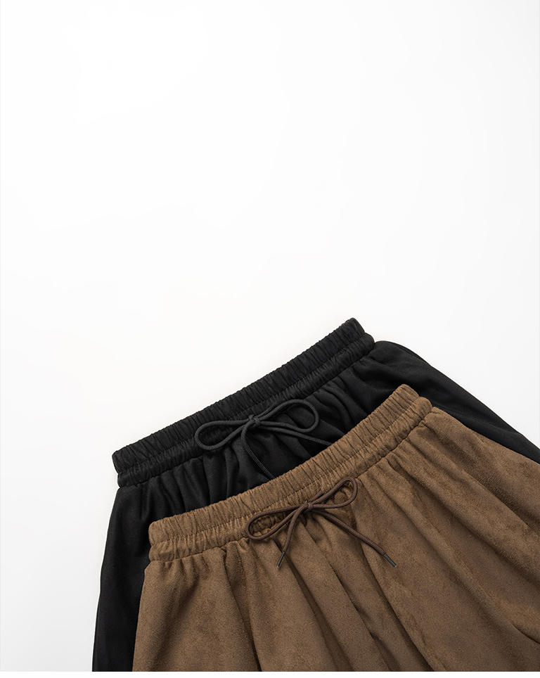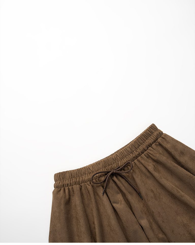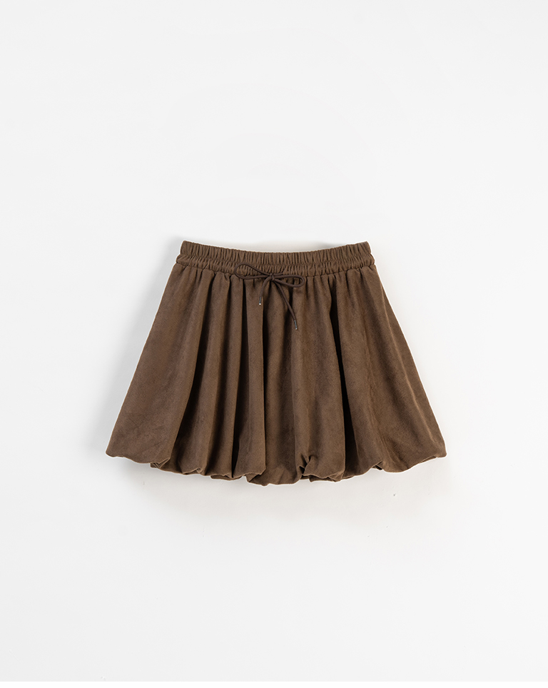 質感抽繩氣球麂皮短裙 兩色售 S/M