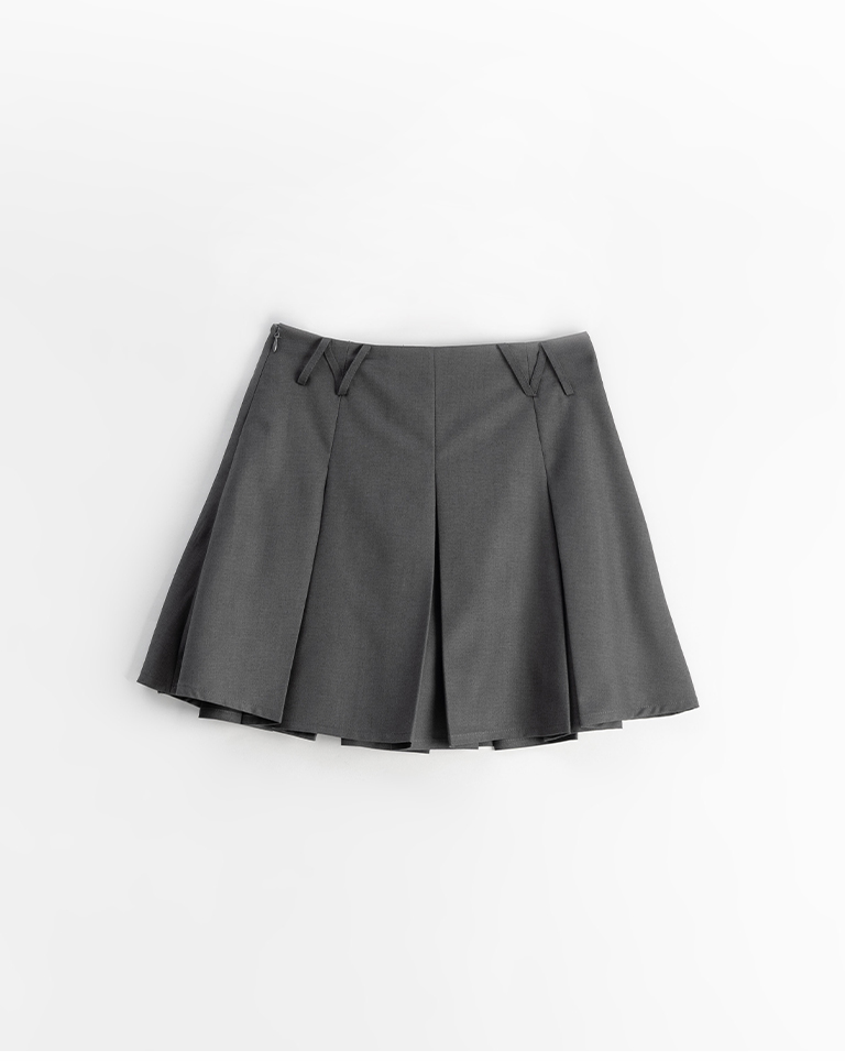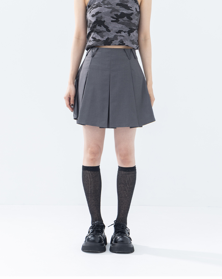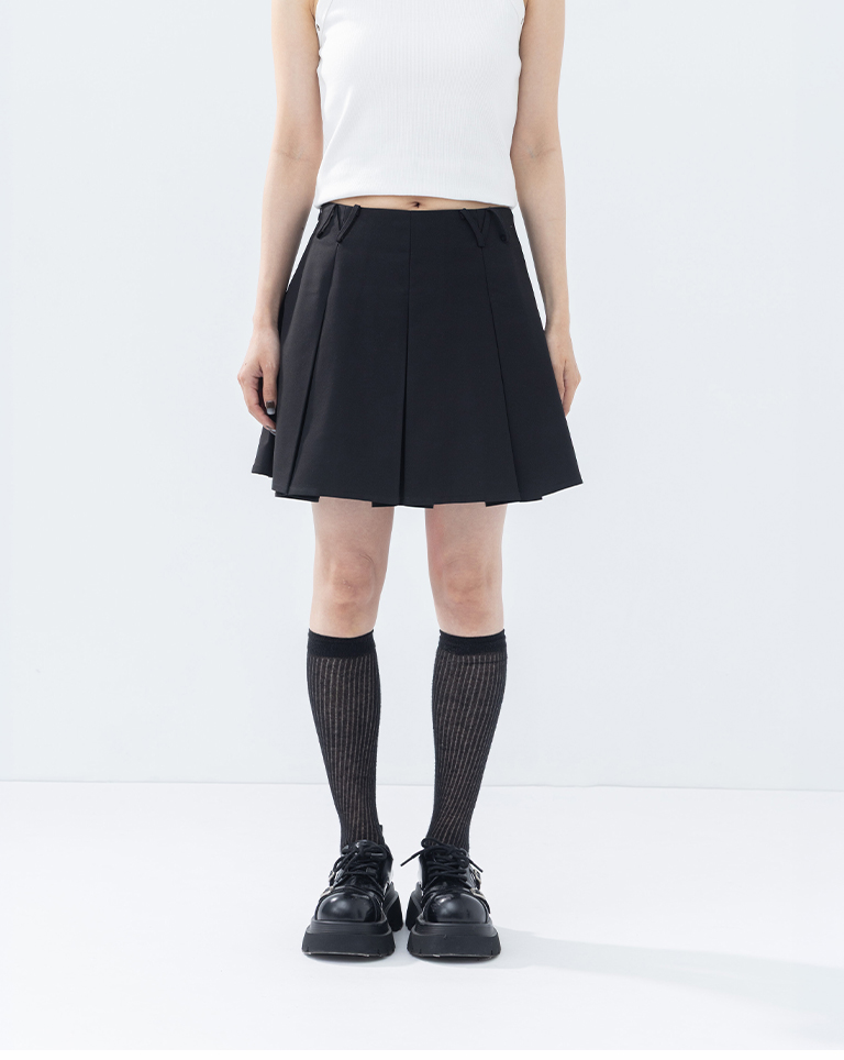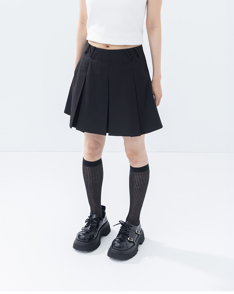 素面三角褲耳設計壓褶短裙