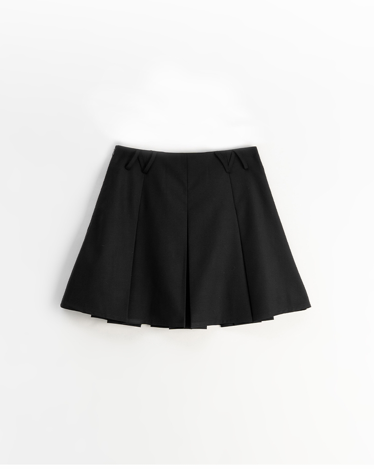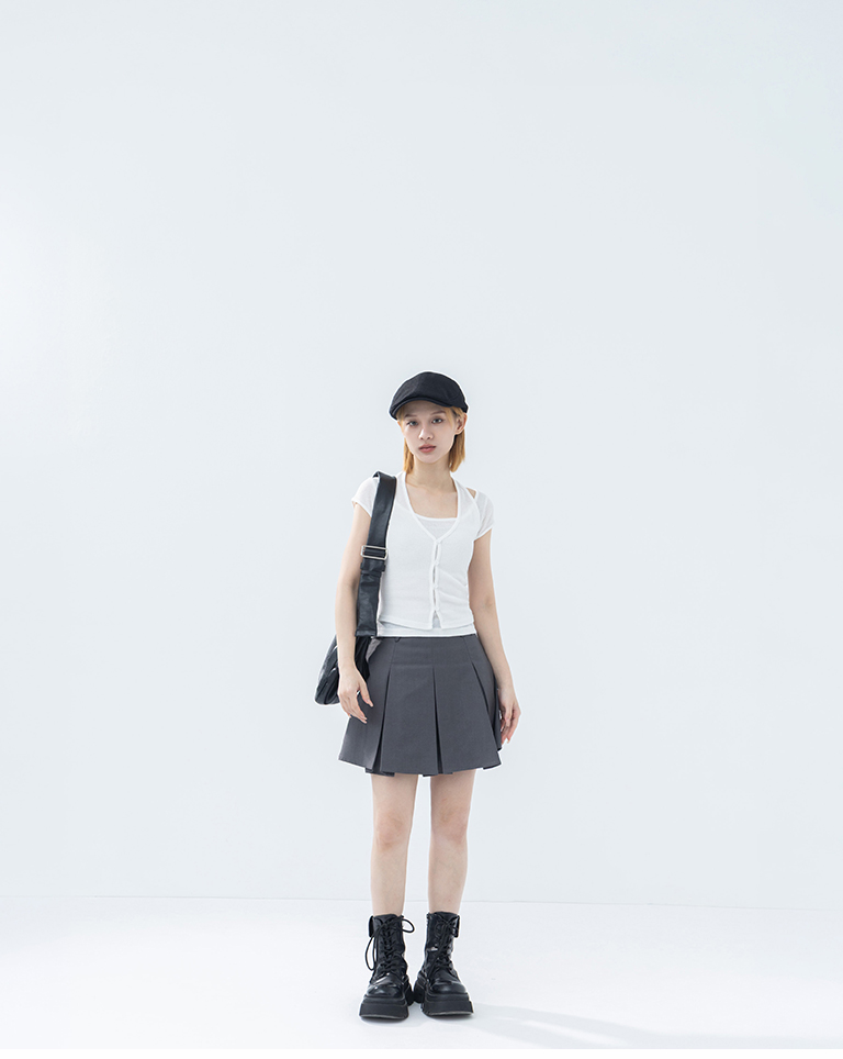 素面三角褲耳設計壓褶短裙 兩色售 S/M/L