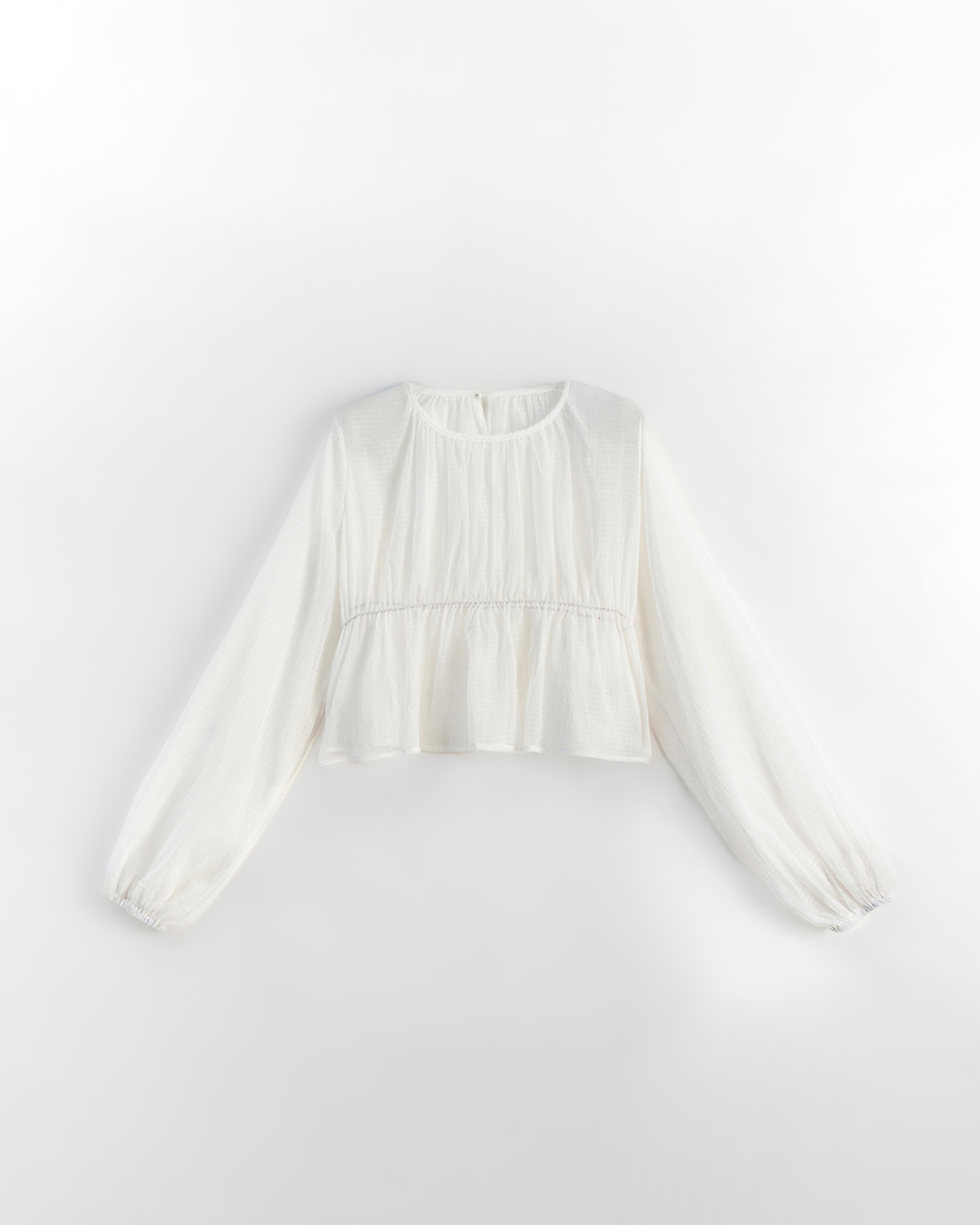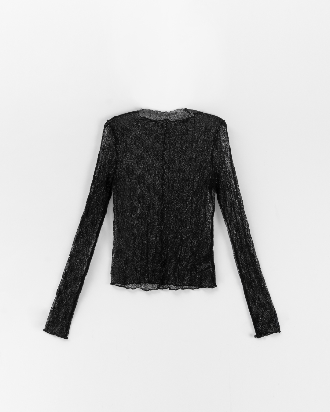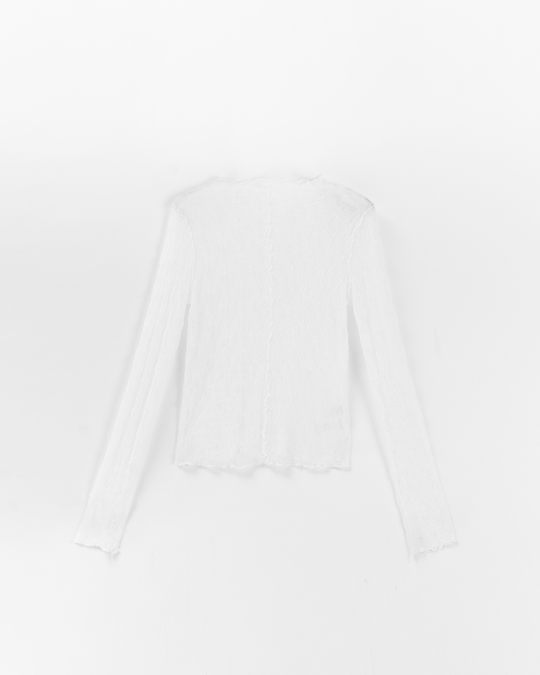 S~L身形實測!分尺寸皺皺木耳邊透膚高領長袖上衣