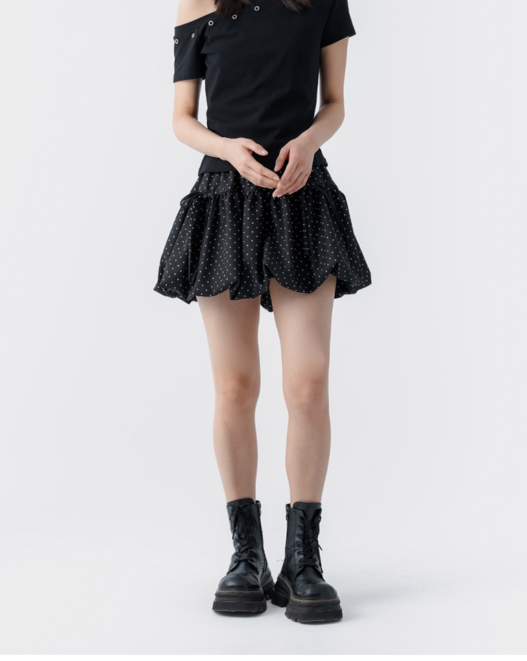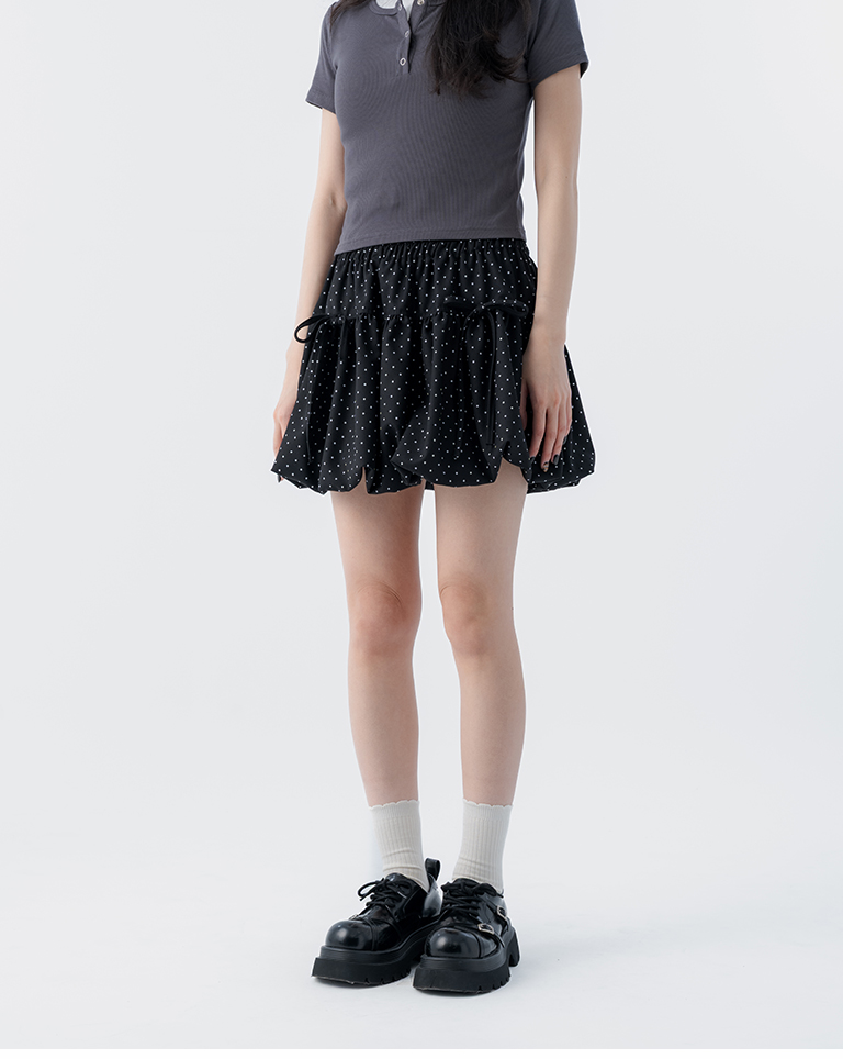 點點蝴蝶結造型花苞短裙
