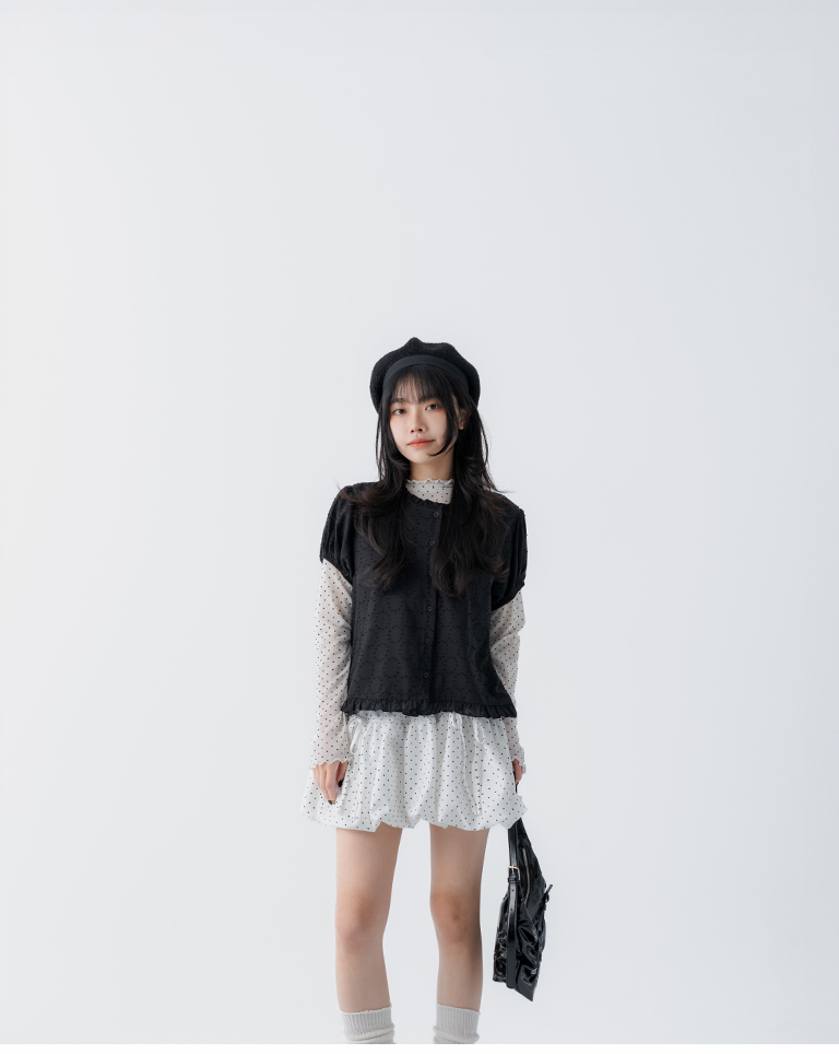 點點蝴蝶結造型花苞短裙 兩色售