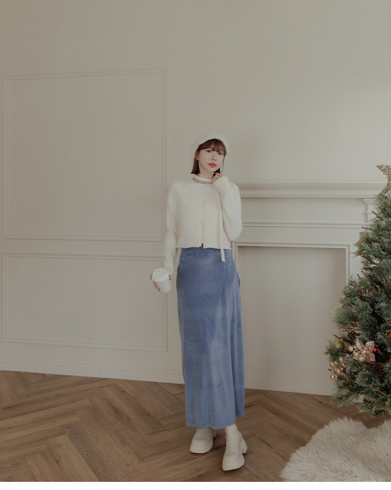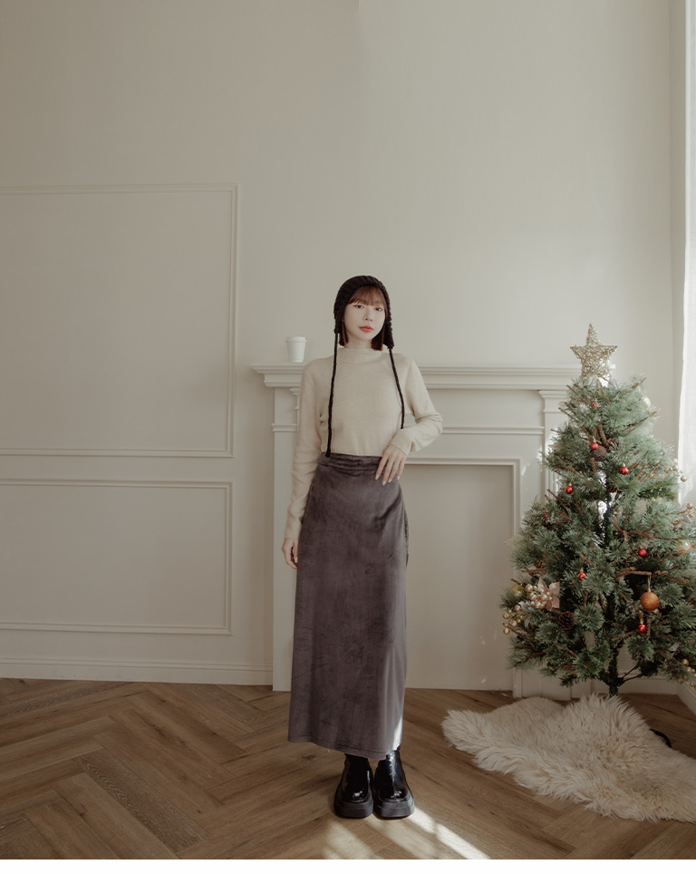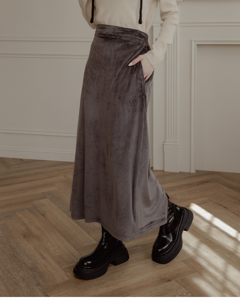 燈芯絨光澤造型直筒長裙